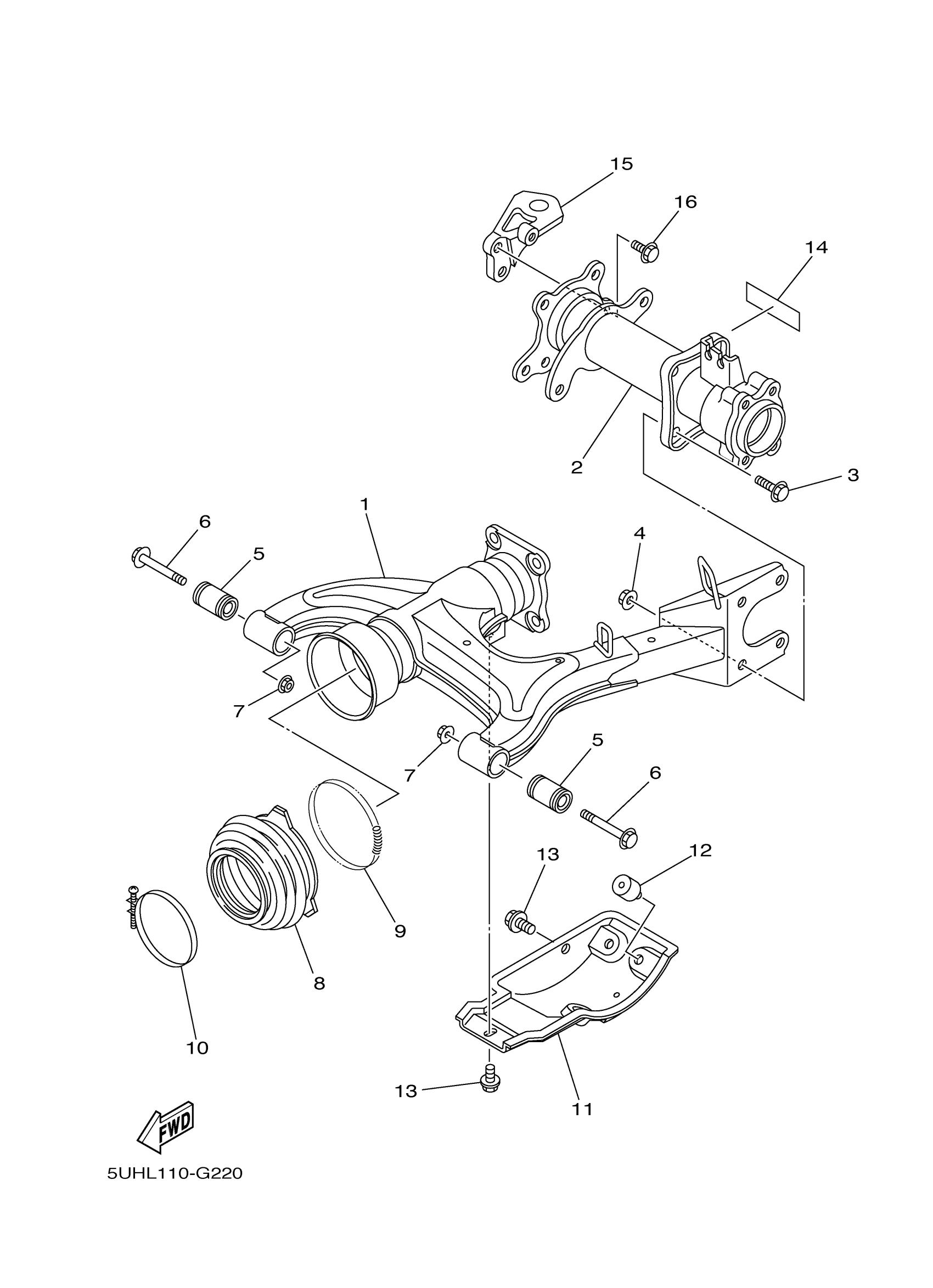 Yamaha YFM35FGHY (GRIZZLY 350 4WD HUNTER) 5UHT 2009 REAR ARM Diagram