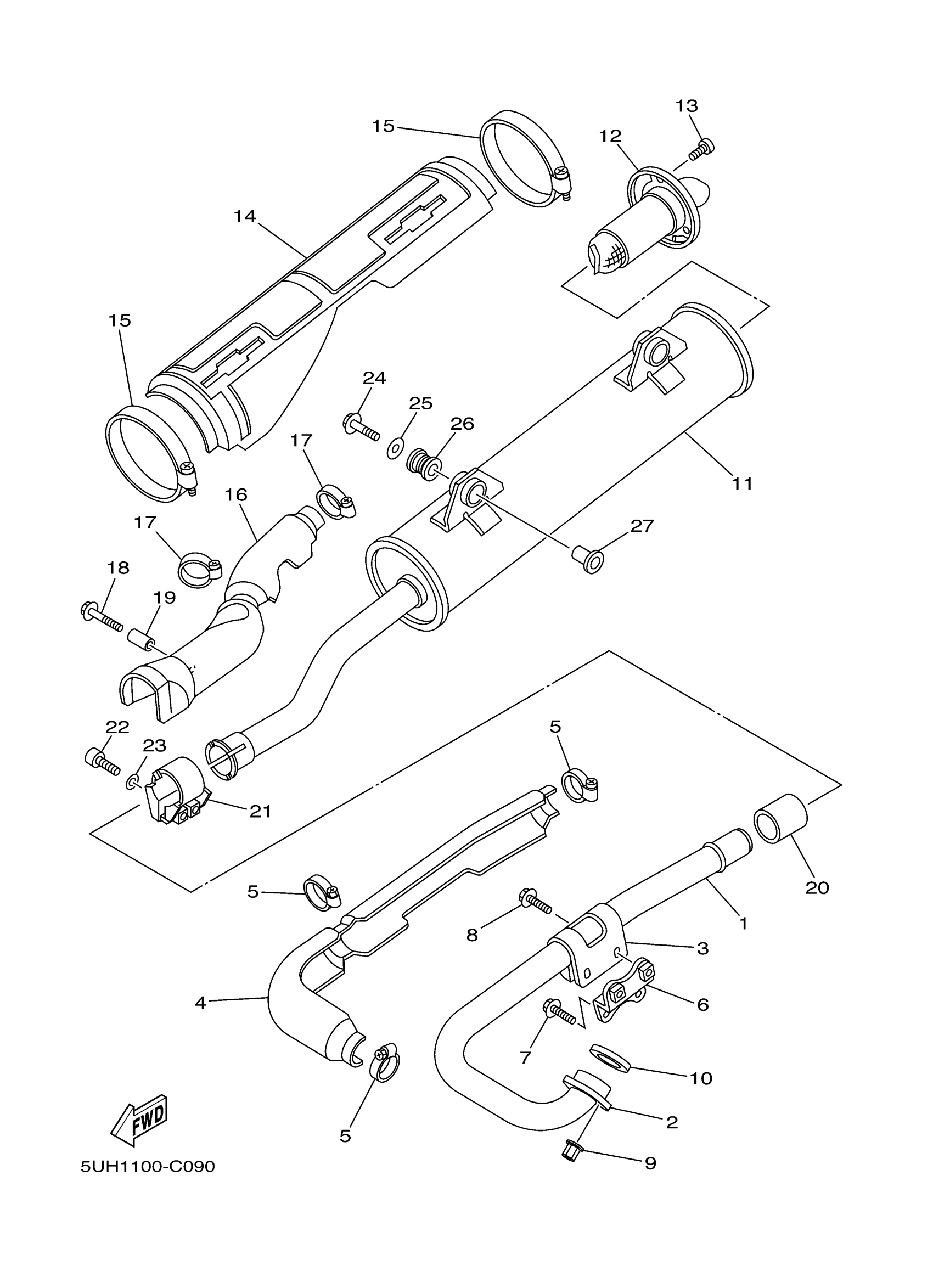 Yamaha YFM35FGIHA (GRIZZLY 350 1RS 4WD HUNTER) 4S2U 2011 EXHAUST Diagram