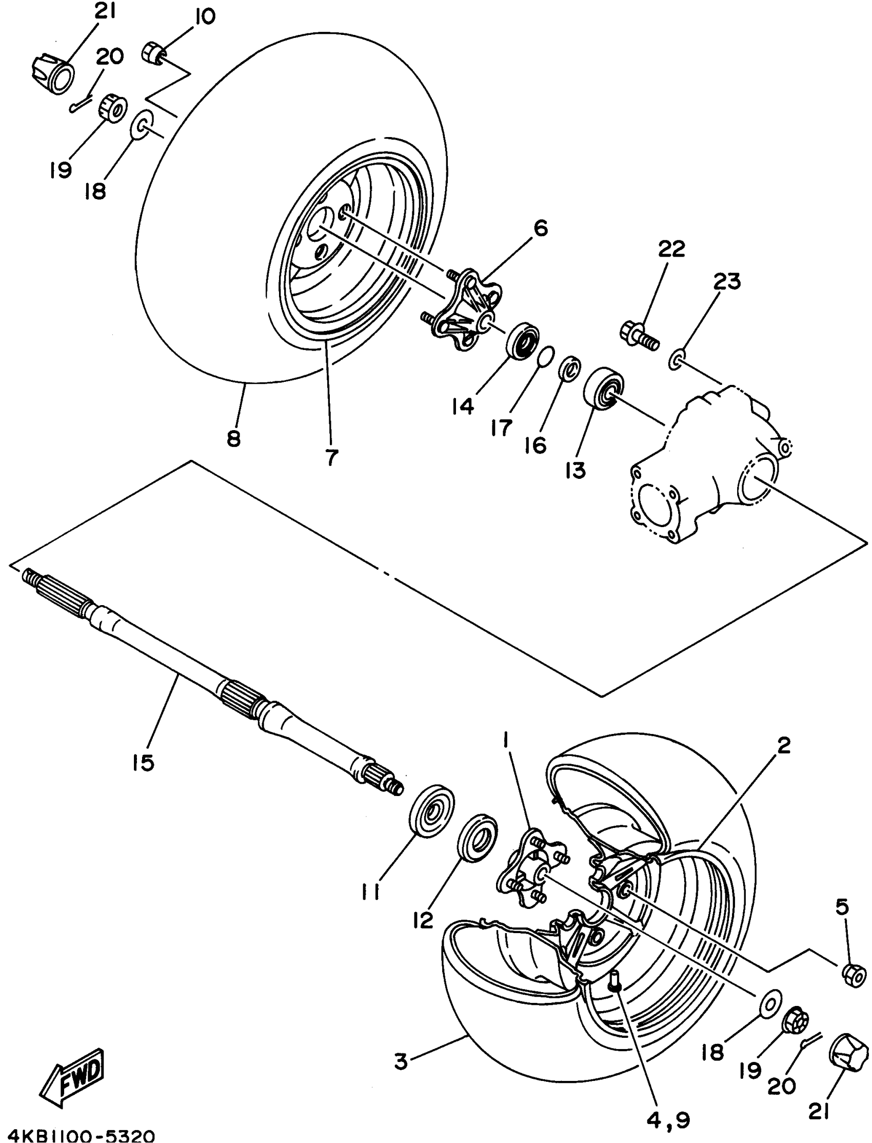 Yamaha YFM35FXG 4KB1 1995 REAR WHEEL Diagram