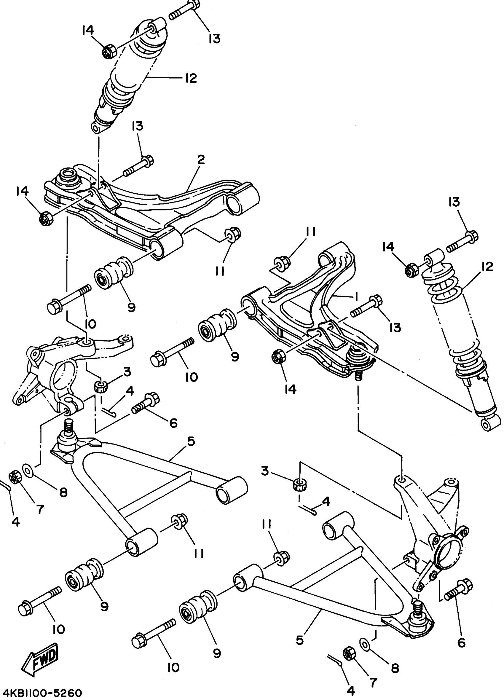 Yamaha YFM35FXG_MNH (WOLVERINE) 4KB1 1995 FRONT SUSPENSION - WHEEL Diagram