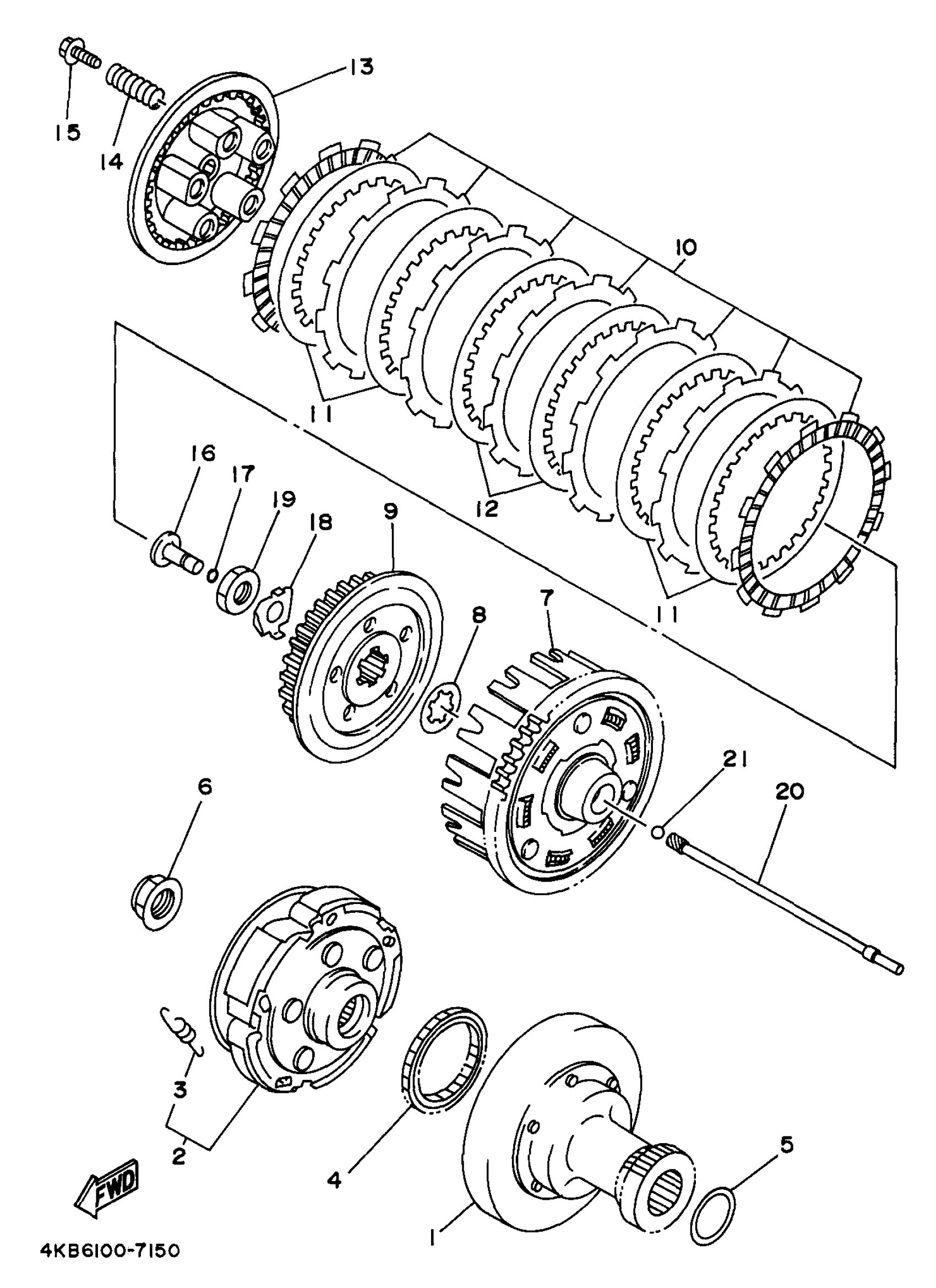 Yamaha YFM35FXJ (WOLVERINE) 4KB6 1997 CLUTCH Diagram