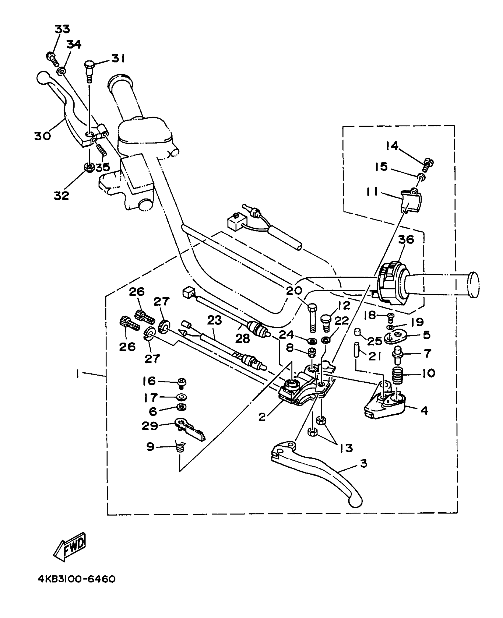 Yamaha YFM35FXJ (WOLVERINE) 4KB6 1997 HANDLE SWITCH LEVER Diagram