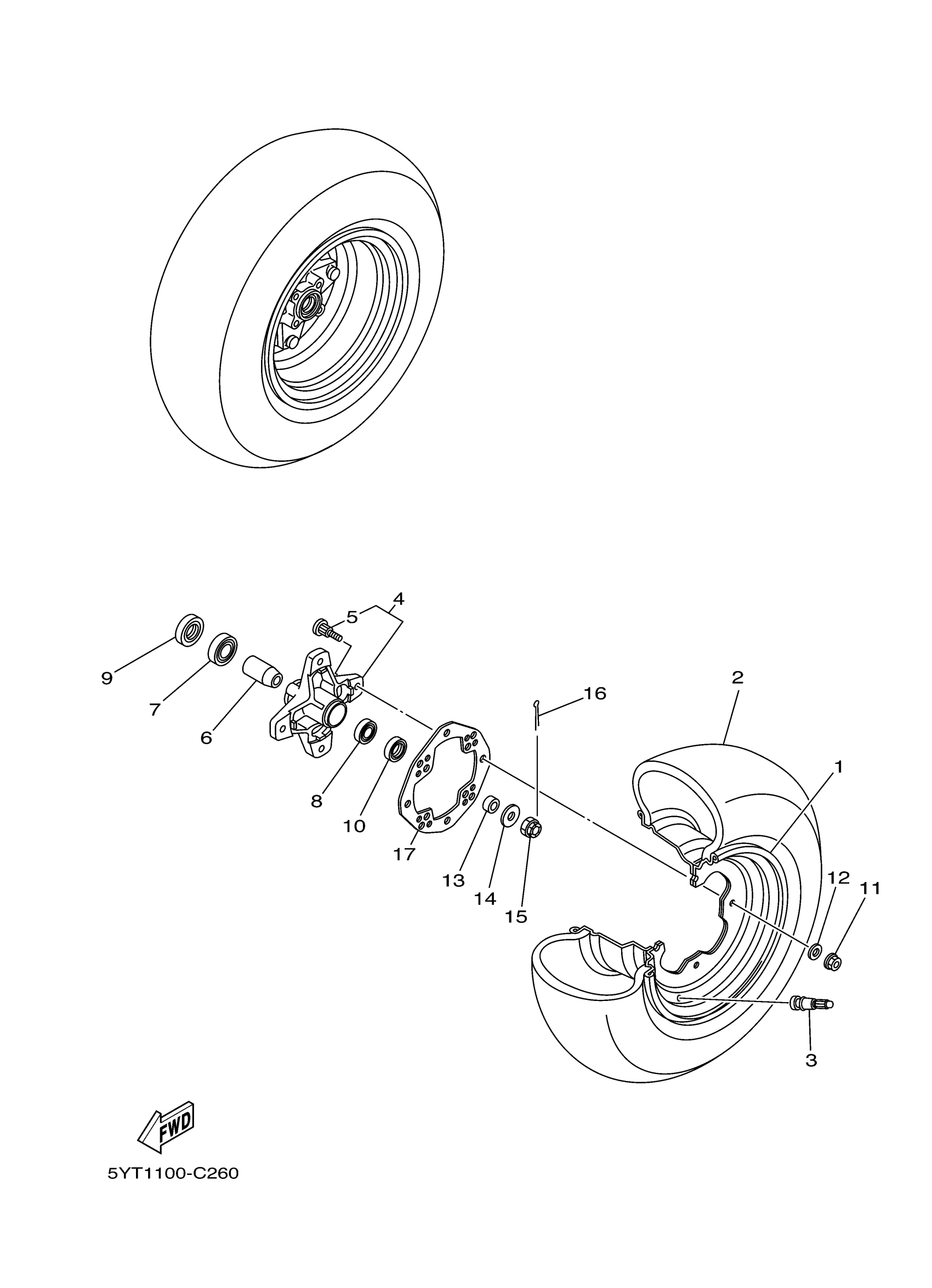 Yamaha YFM35RBW (RAPTOR 350) 1BS7 2012 FRONT WHEEL Diagram