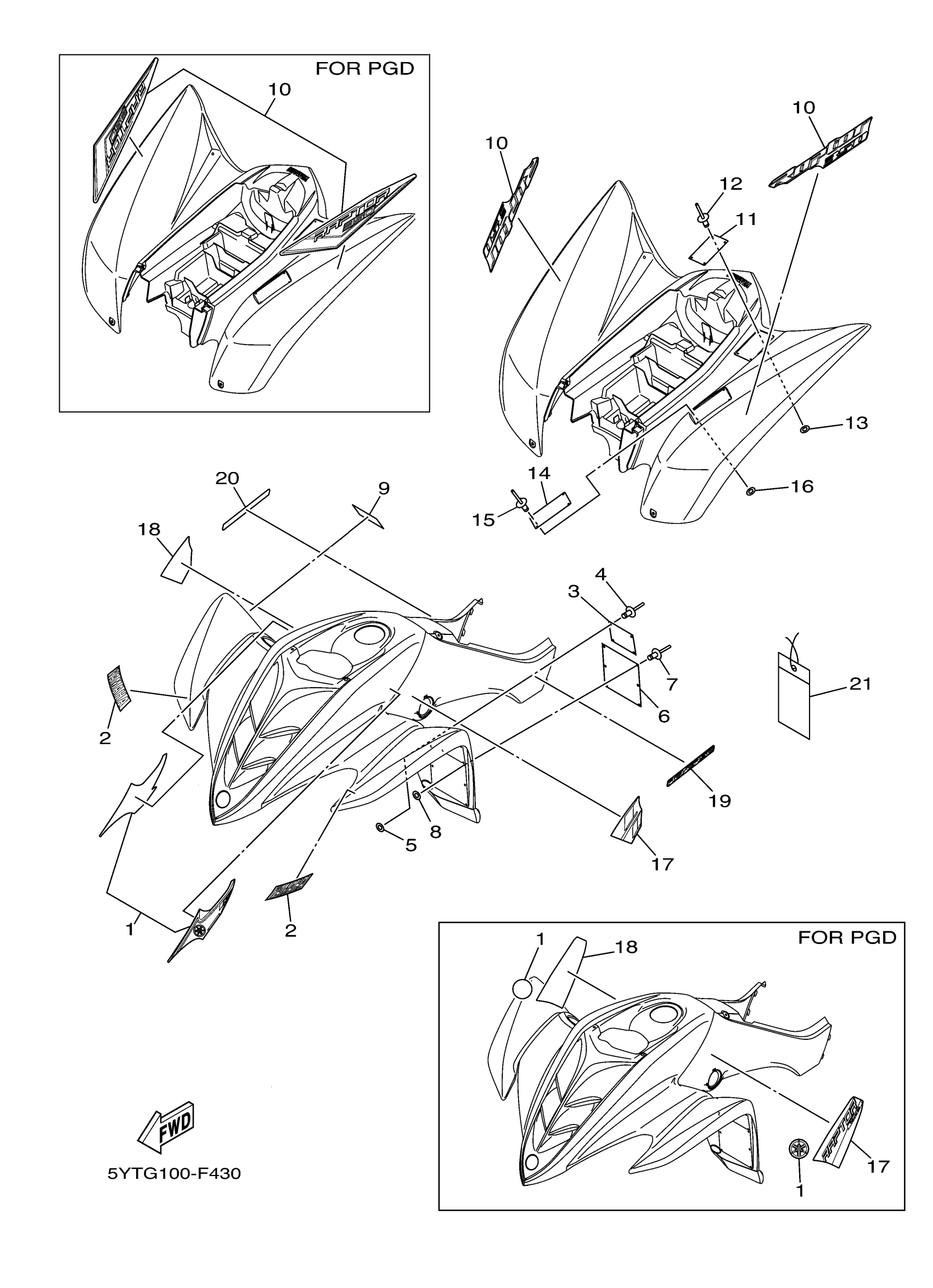 Yamaha YFM35RW (RAPTOR 350) 5YTG 2007 EMBLEM LABEL 1 Diagram