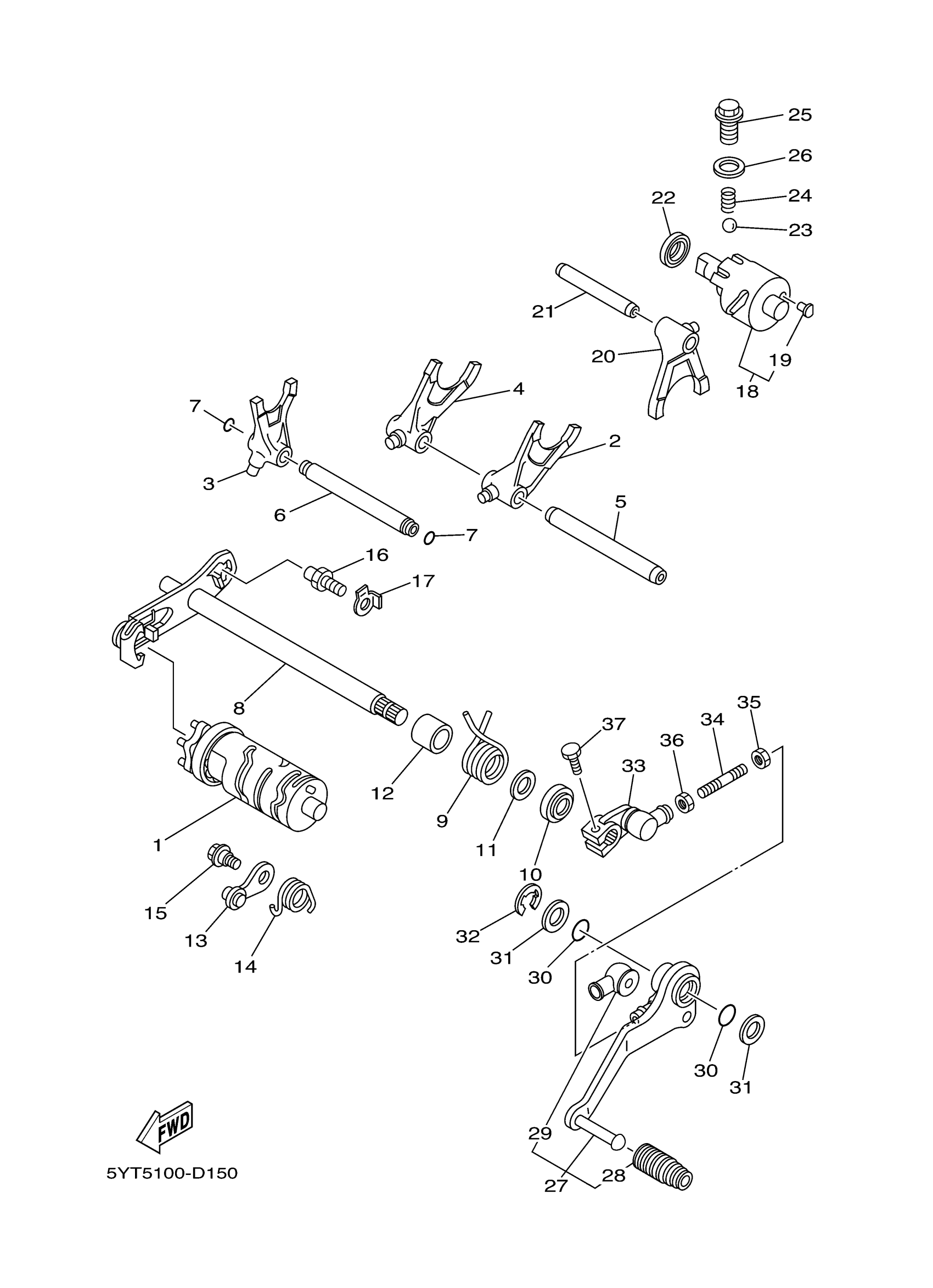 Yamaha YFM35RXGY (RAPTOR 350) 5YTS 2008 SHIFT CAM FORK Diagram