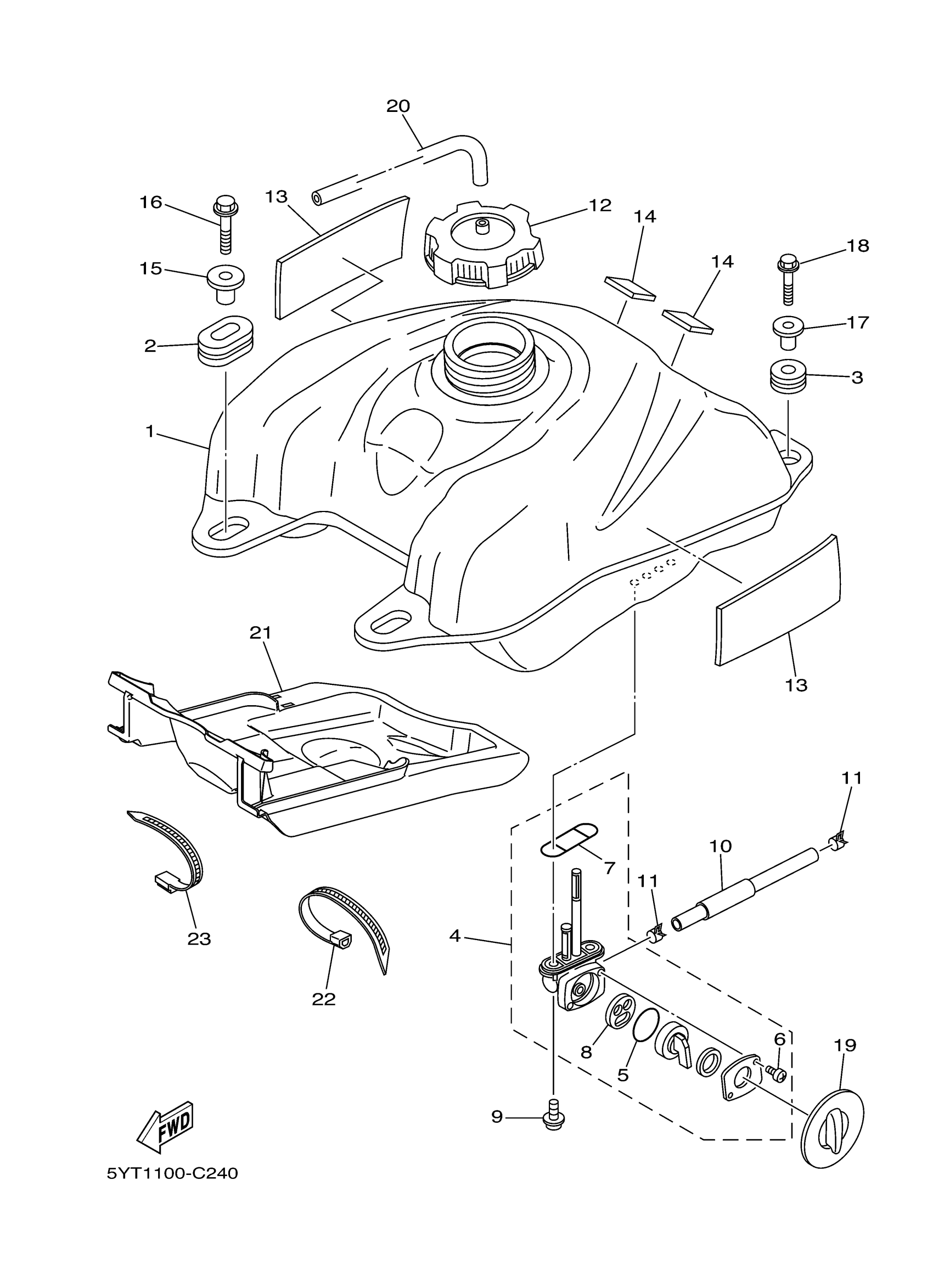 Yamaha YFM35RZW (RAPTOR 350) 1BS1 2010 FUEL TANK Diagram
