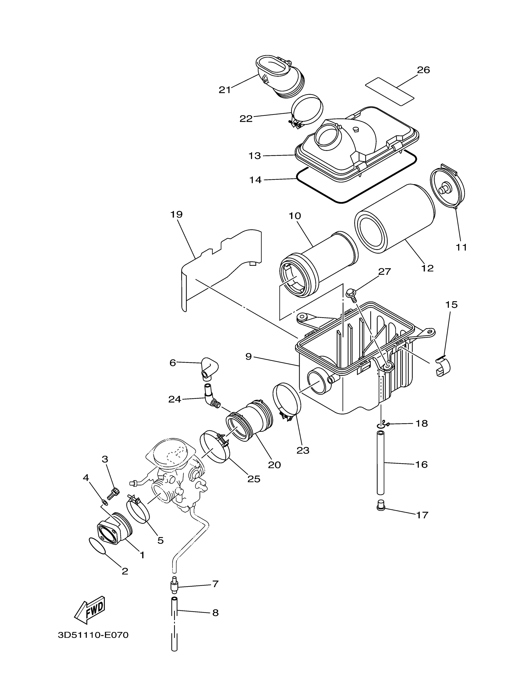 Yamaha YFM35XW (WOLVERINE 350 2WD SPORT) 3D54 2007 INTAKE Diagram