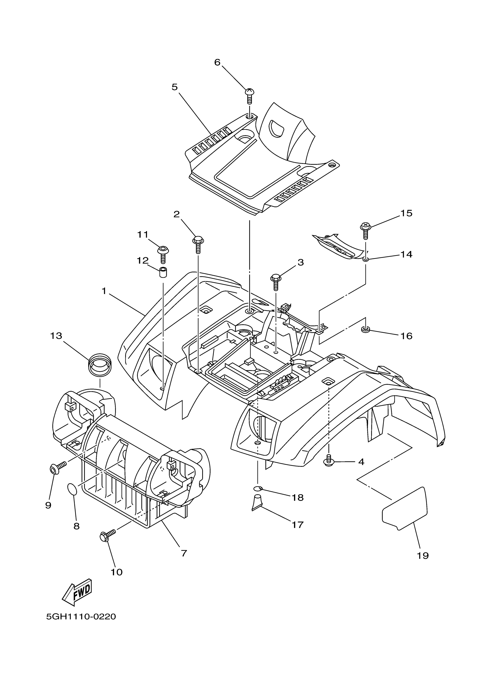 Yamaha YFM400AN (KODIAK 2WD) 5HA7 2001 FRONT FENDER Diagram