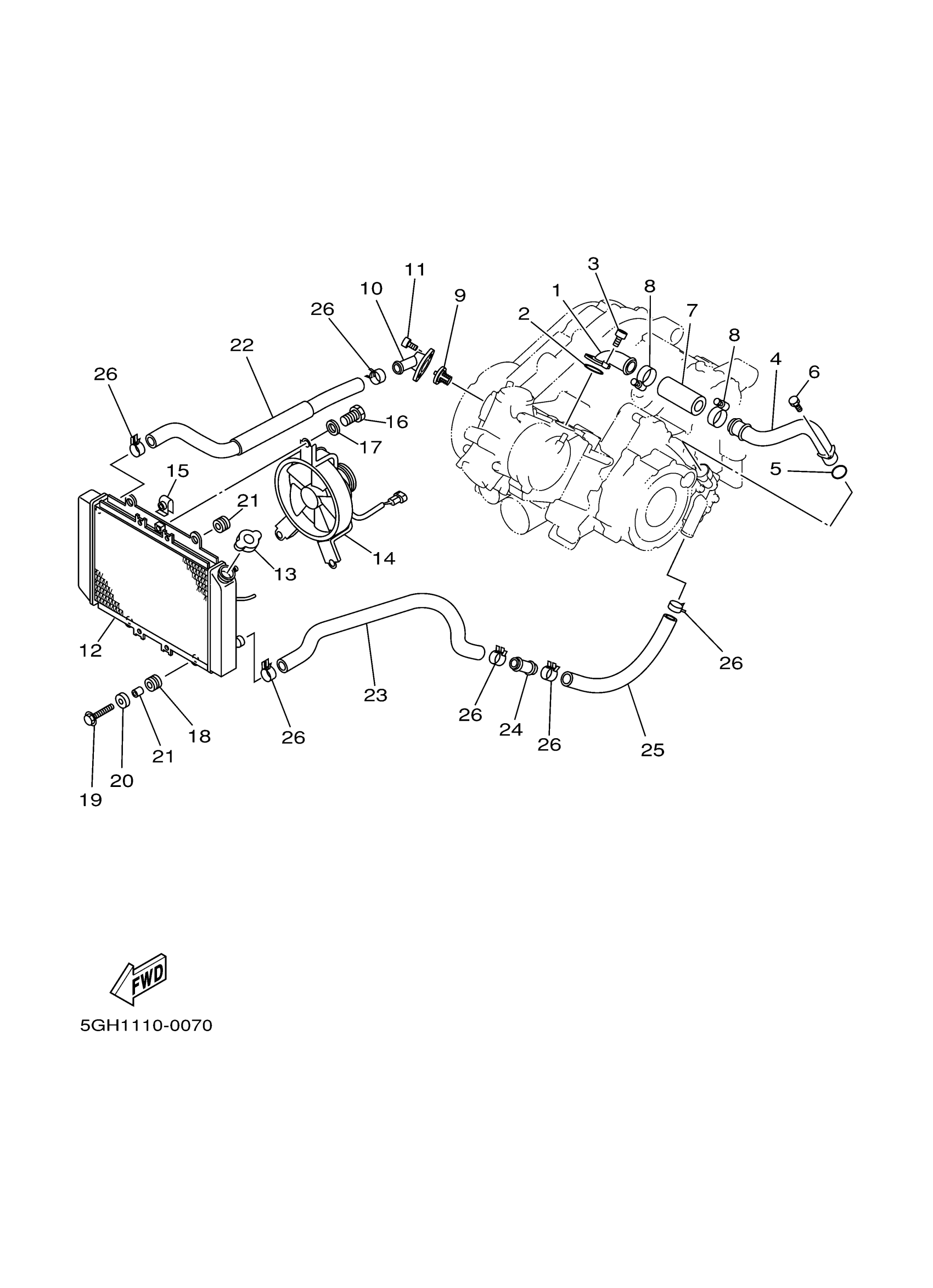 Yamaha YFM400FAHMC (KODIAK 4WD REALTREE X-TRA) 5GH7 2000 RADIATOR HOSE Diagram