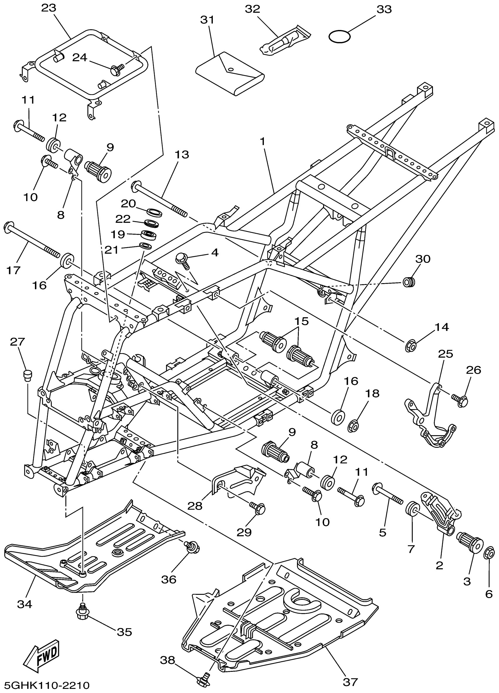 Yamaha YFM400FAHP (KODIAK 4WD HUNTER) 5GHR 2002 FRAME Diagram