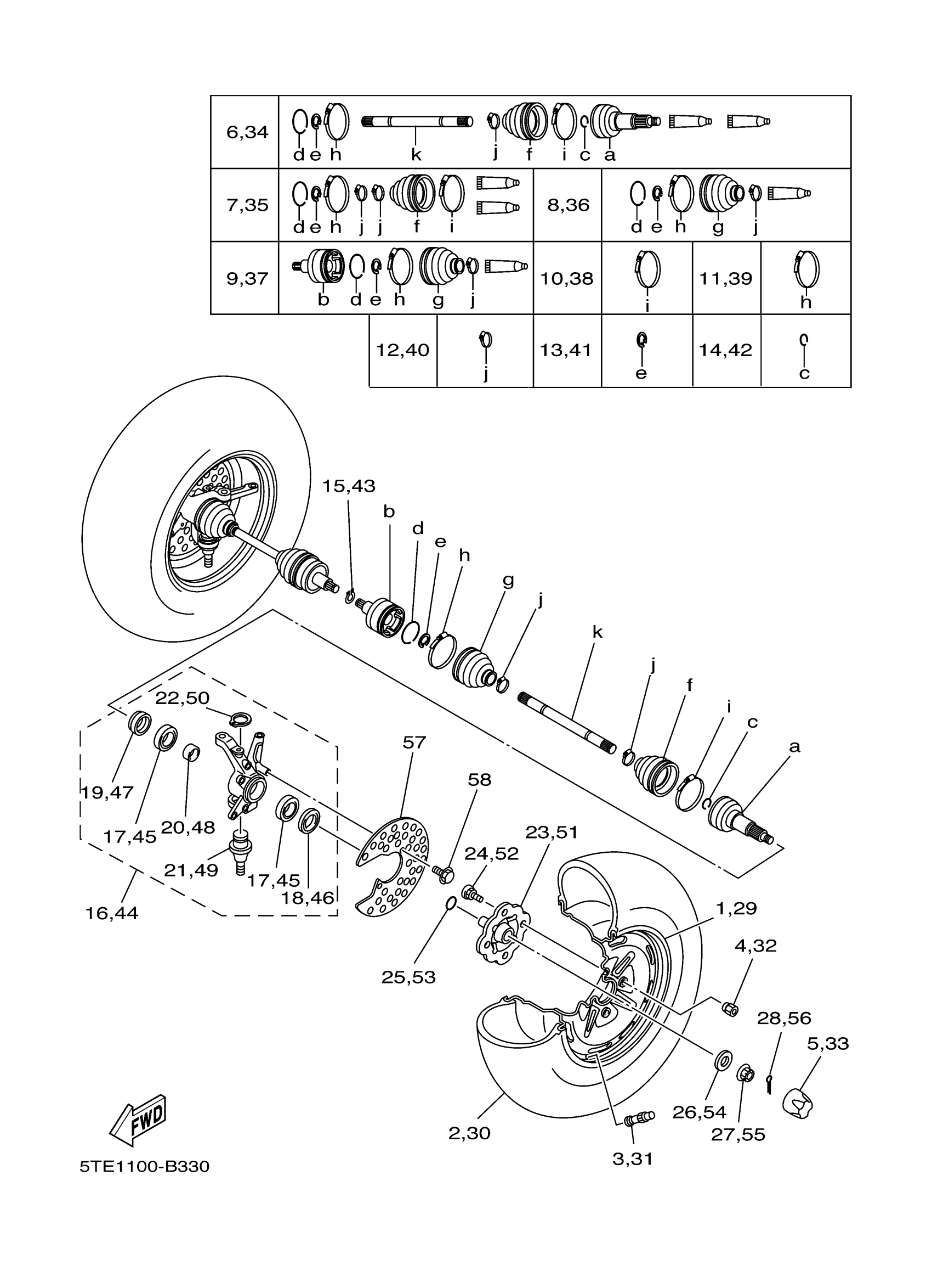 Yamaha YFM400FAHR (KODIAK 4X4 CAMO HARDWOODS) 5TE5 2003 FRONT WHEEL Diagram