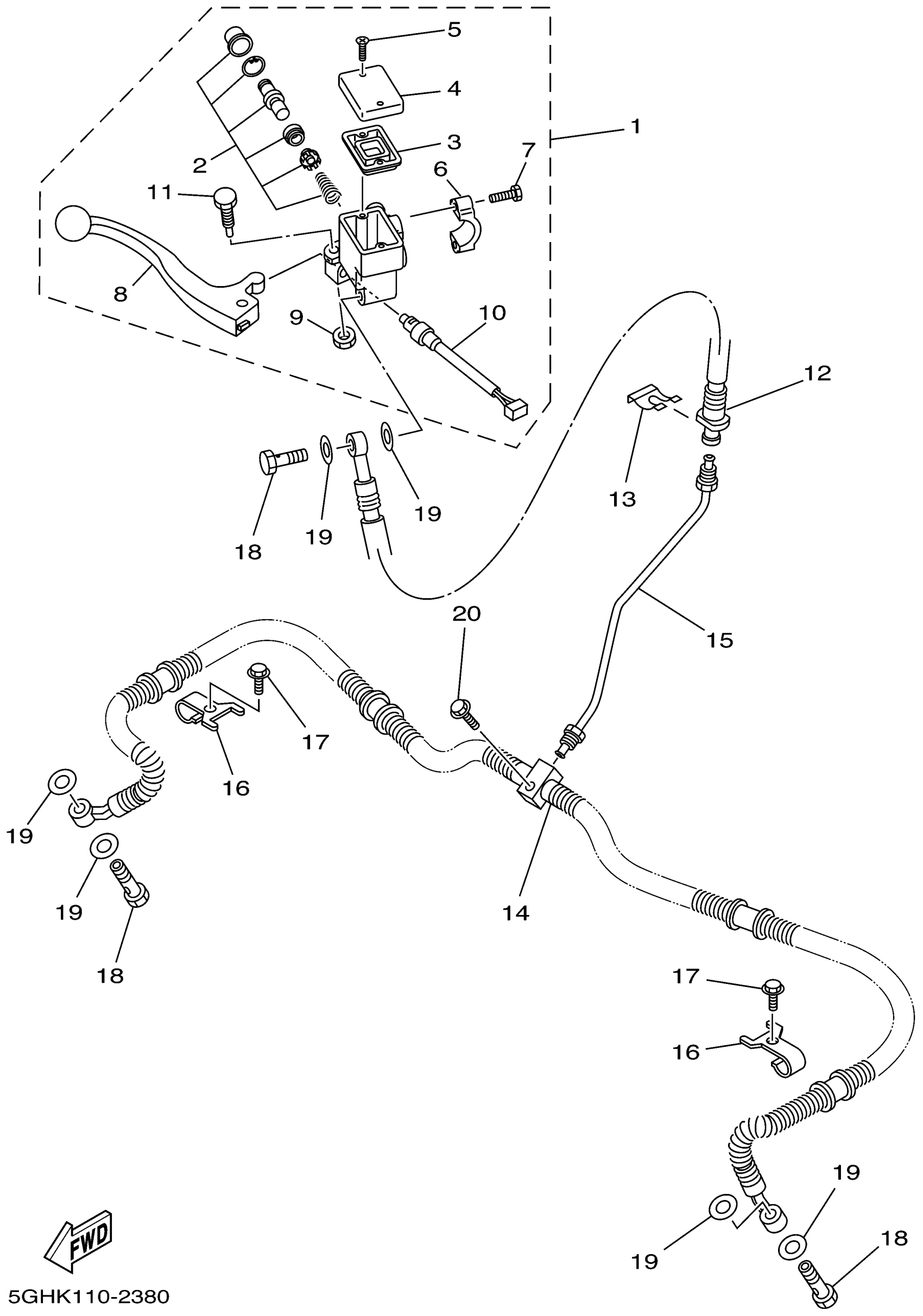 Yamaha YFM400FAP (KODIAK 4WD) 5GHK 2002 FRONT MASTER CYLINDER Diagram