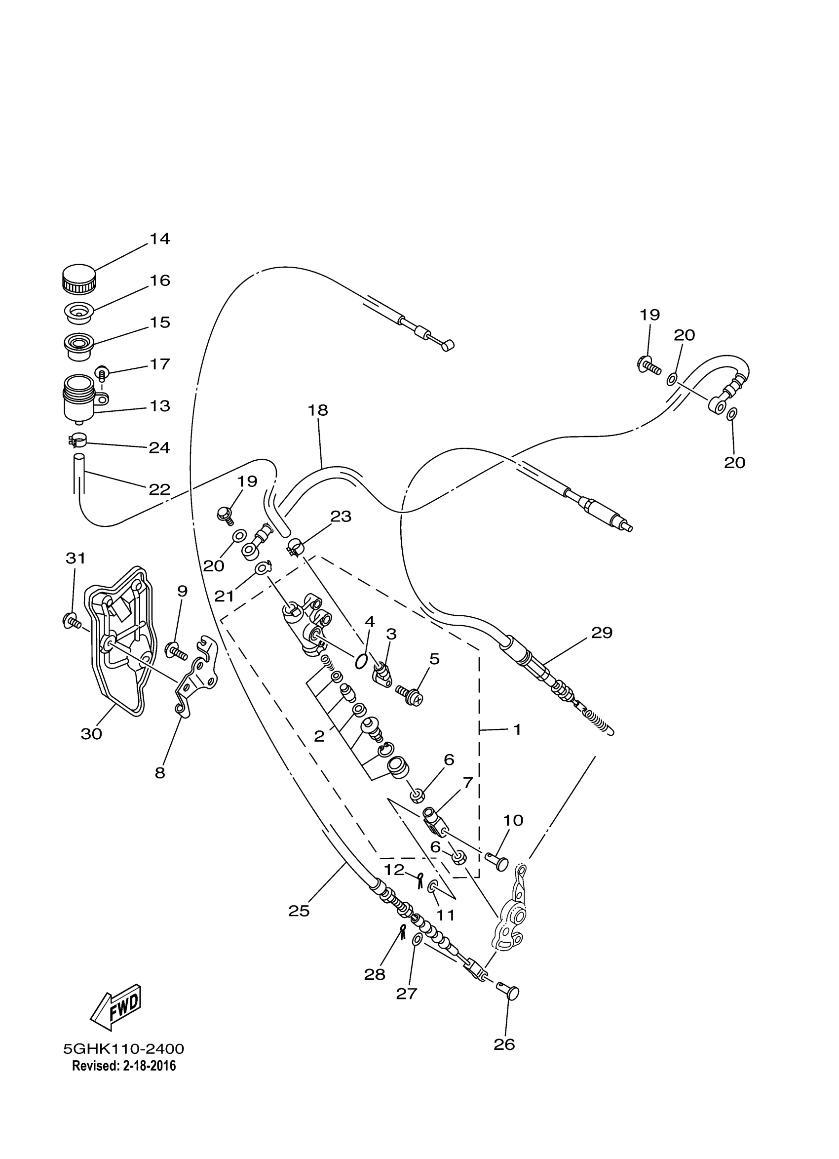 Yamaha YFM400FAP (KODIAK 4WD) 5GHK 2002 REAR MASTER CYLINDER Diagram