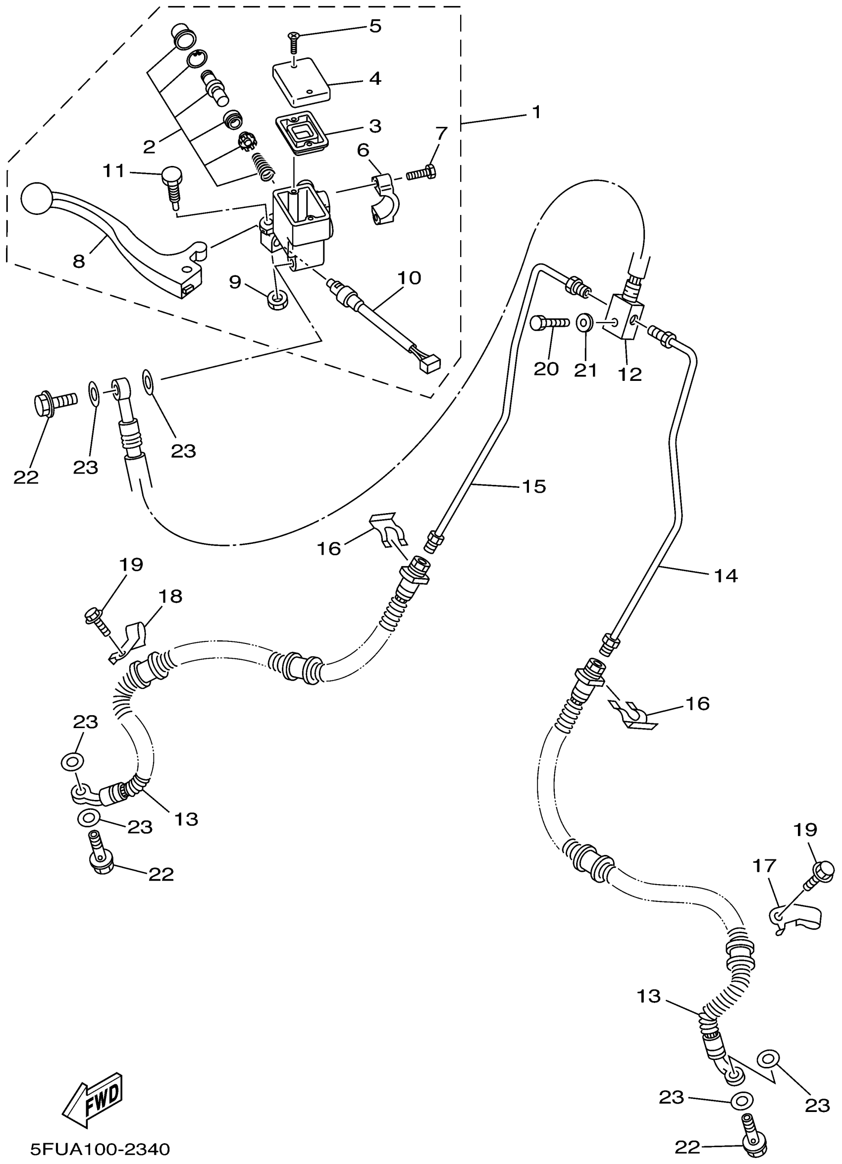 Yamaha YFM400FP (BIG BEAR 400 4WD_REAL TREE XTRA) 5FUA 2002 FRONT MASTER CYLINDER Diagram