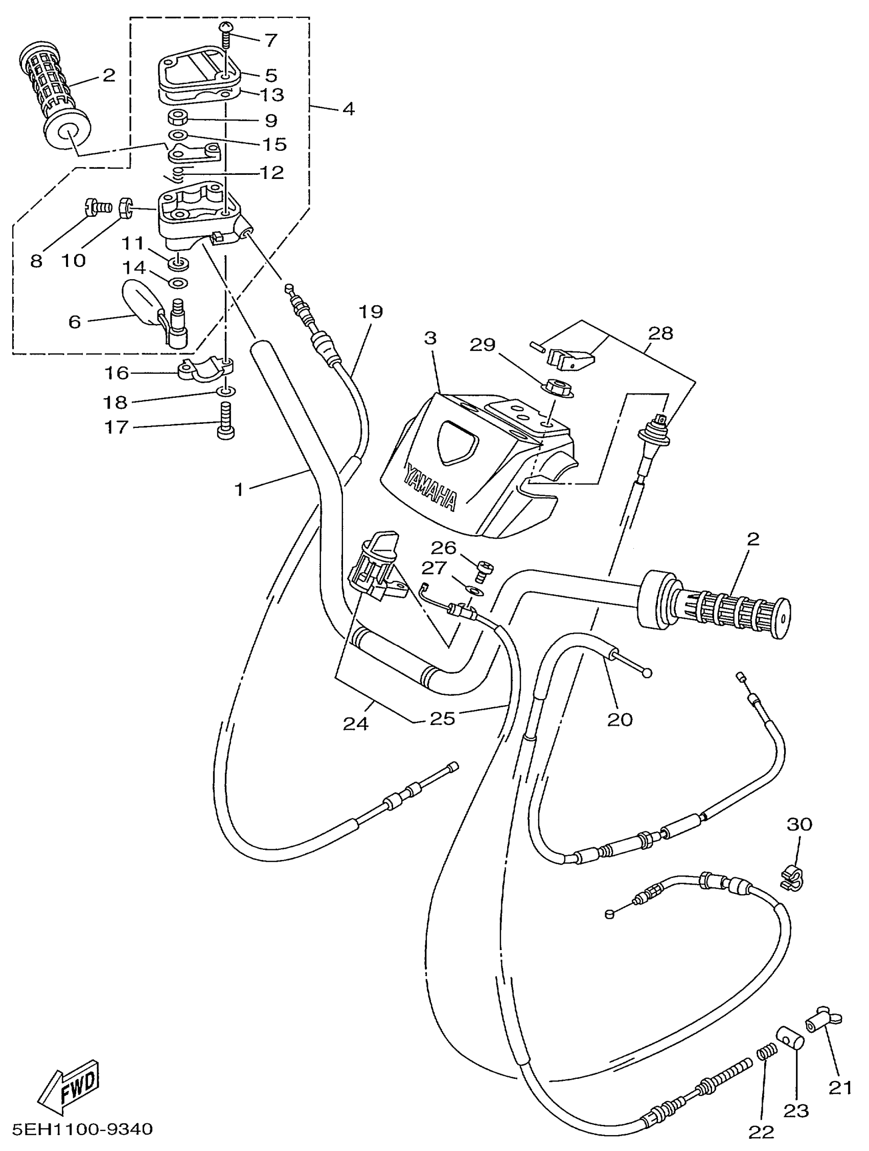 Yamaha YFM400FWBLC (KODIAK 4WD) 5EH2 1999 STEERING HANDLE CABLE Diagram