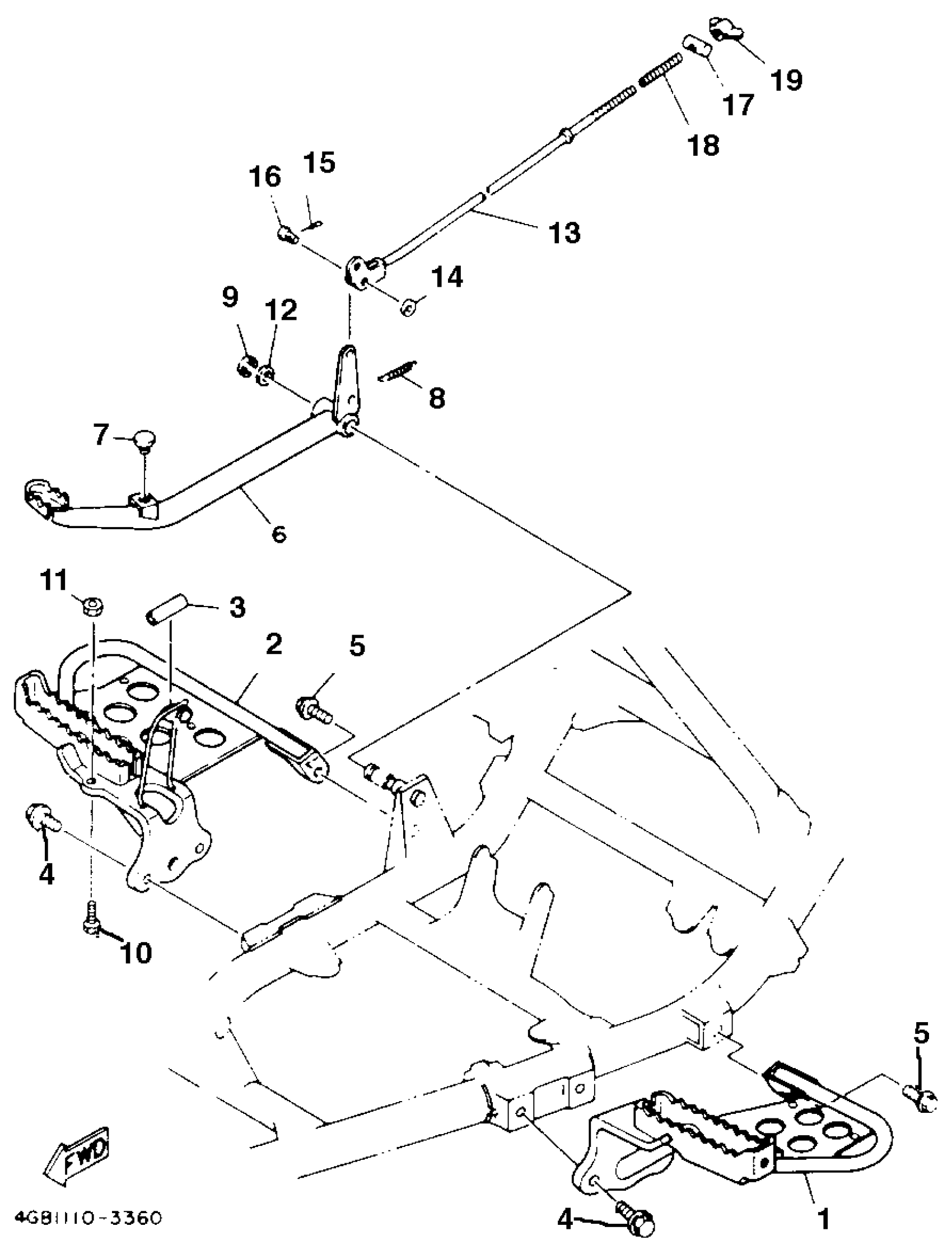 Yamaha YFM400FWE_MNH (KODIAK 4WD) 4GB1 1993 STAND FOOTREST Diagram