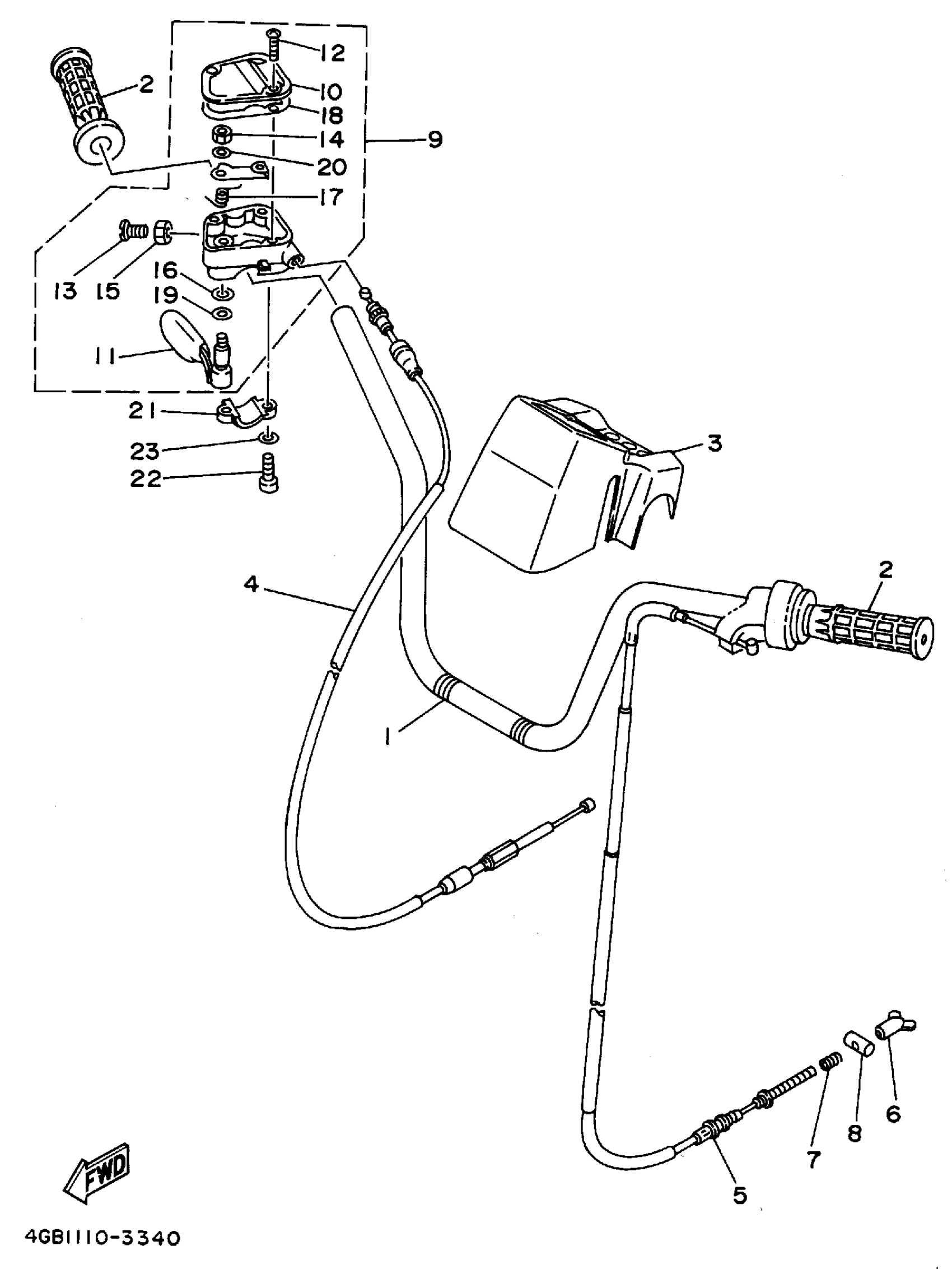 Yamaha YFM400FWF (KODIAK 4WD) 4GB5 1994 STEERING HANDLE - CABLE Diagram
