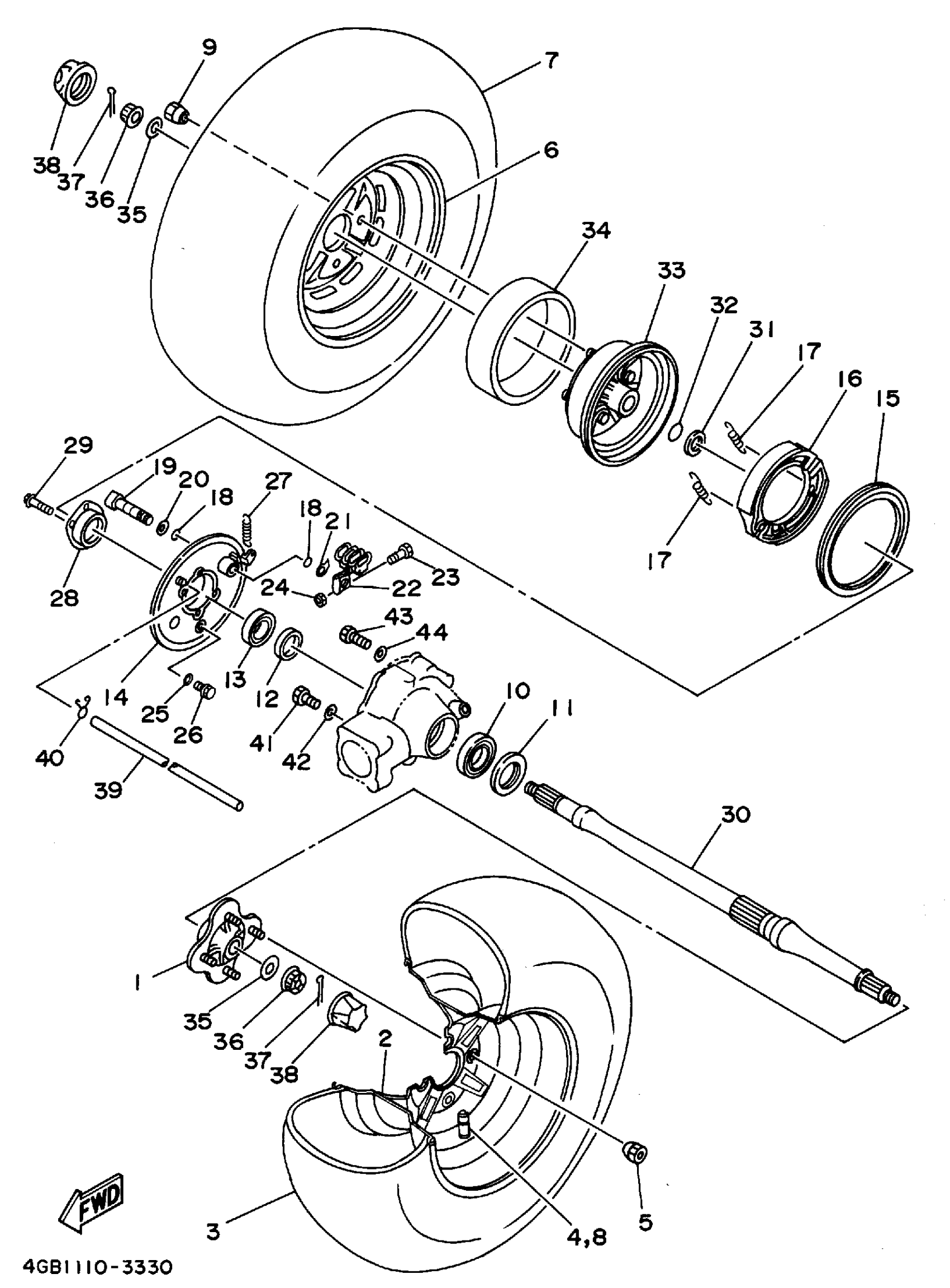 Yamaha YFM400FWF_MNH (KODIAK 4WD) 4GB5 1994 REAR WHEEL Diagram