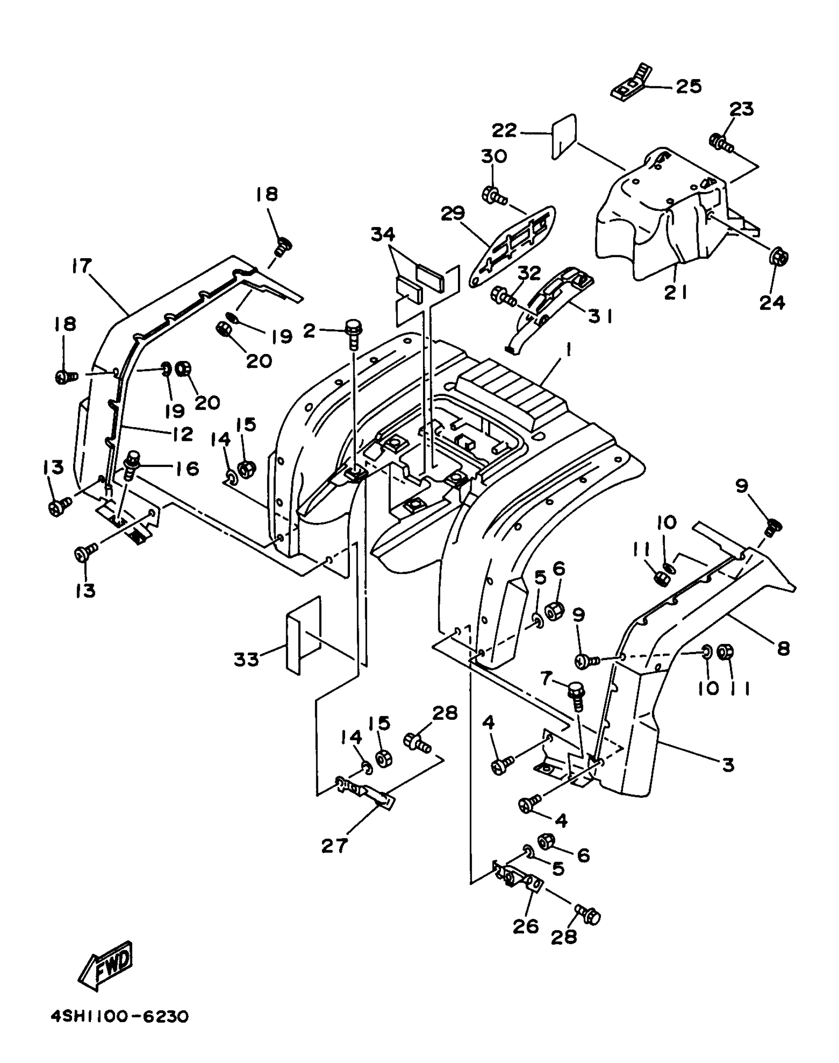 Yamaha YFM400FWJ_MNH (KODIAK 4WD) 4SH6 1997 REAR FENDER Diagram