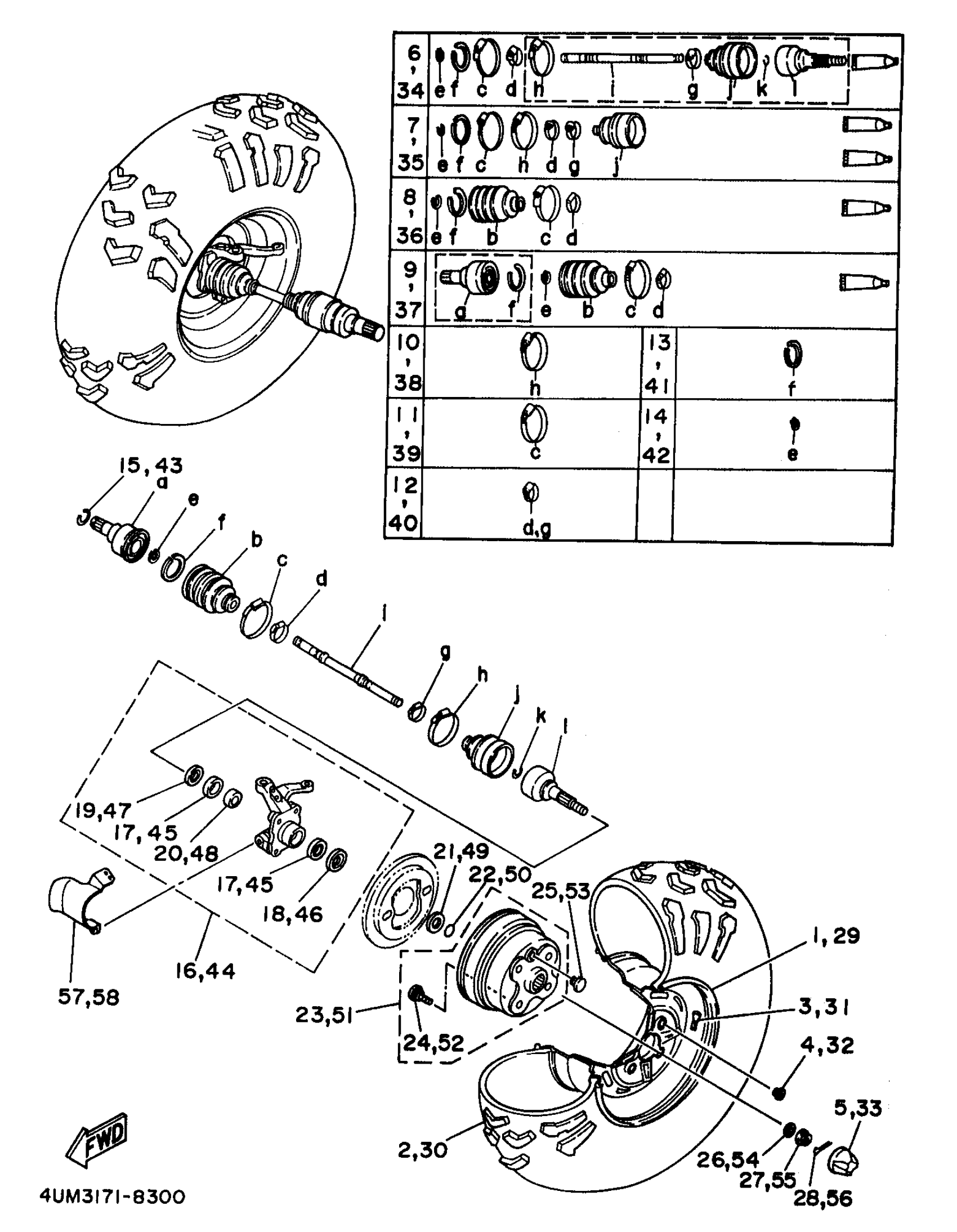 Yamaha YFM400FWK (KODIAK 4WD) 4SHB 1998 FRONT WHEEL Diagram