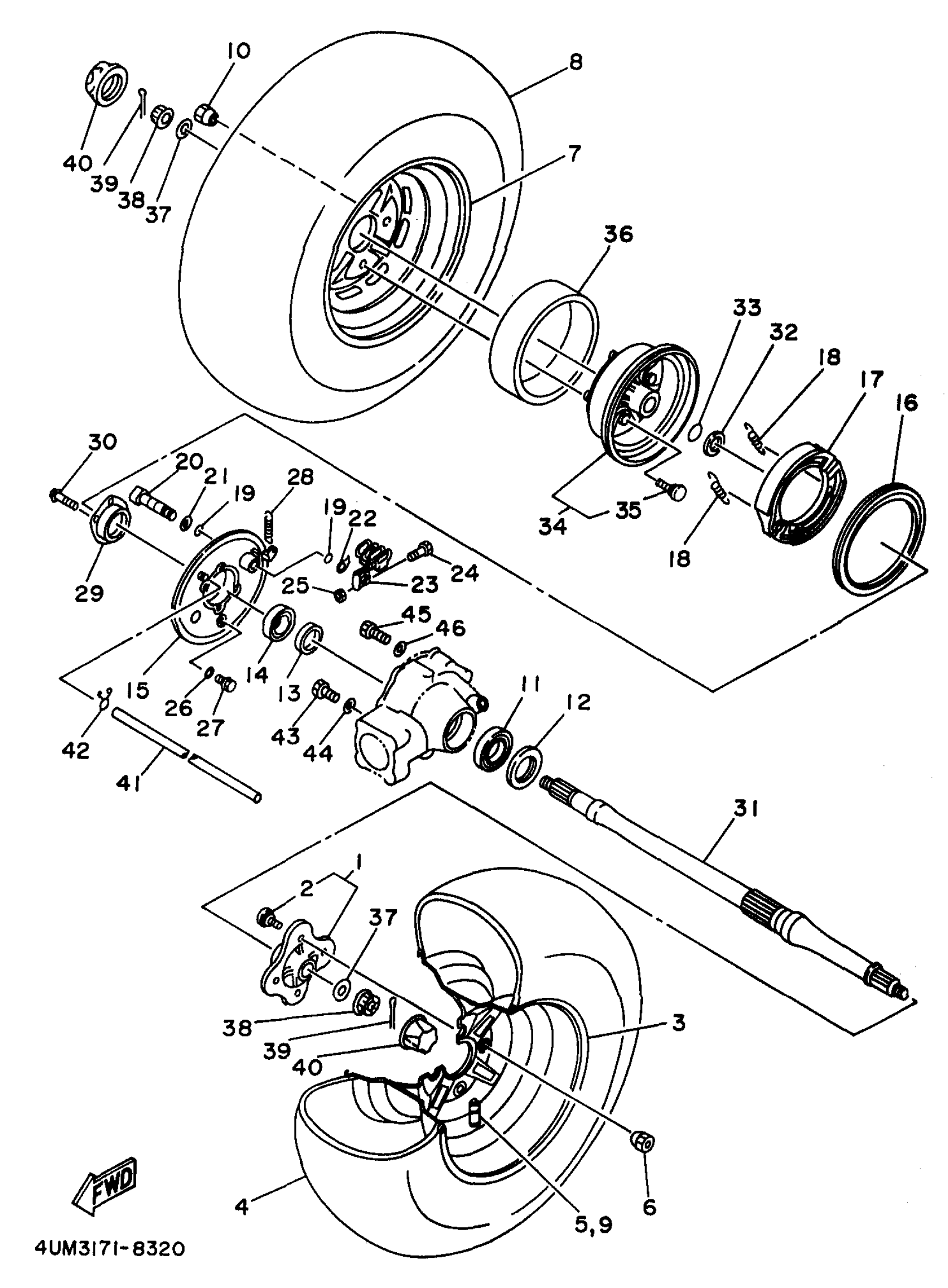 Yamaha YFM400FWK (KODIAK 4WD) 4SHB 1998 REAR WHEEL Diagram