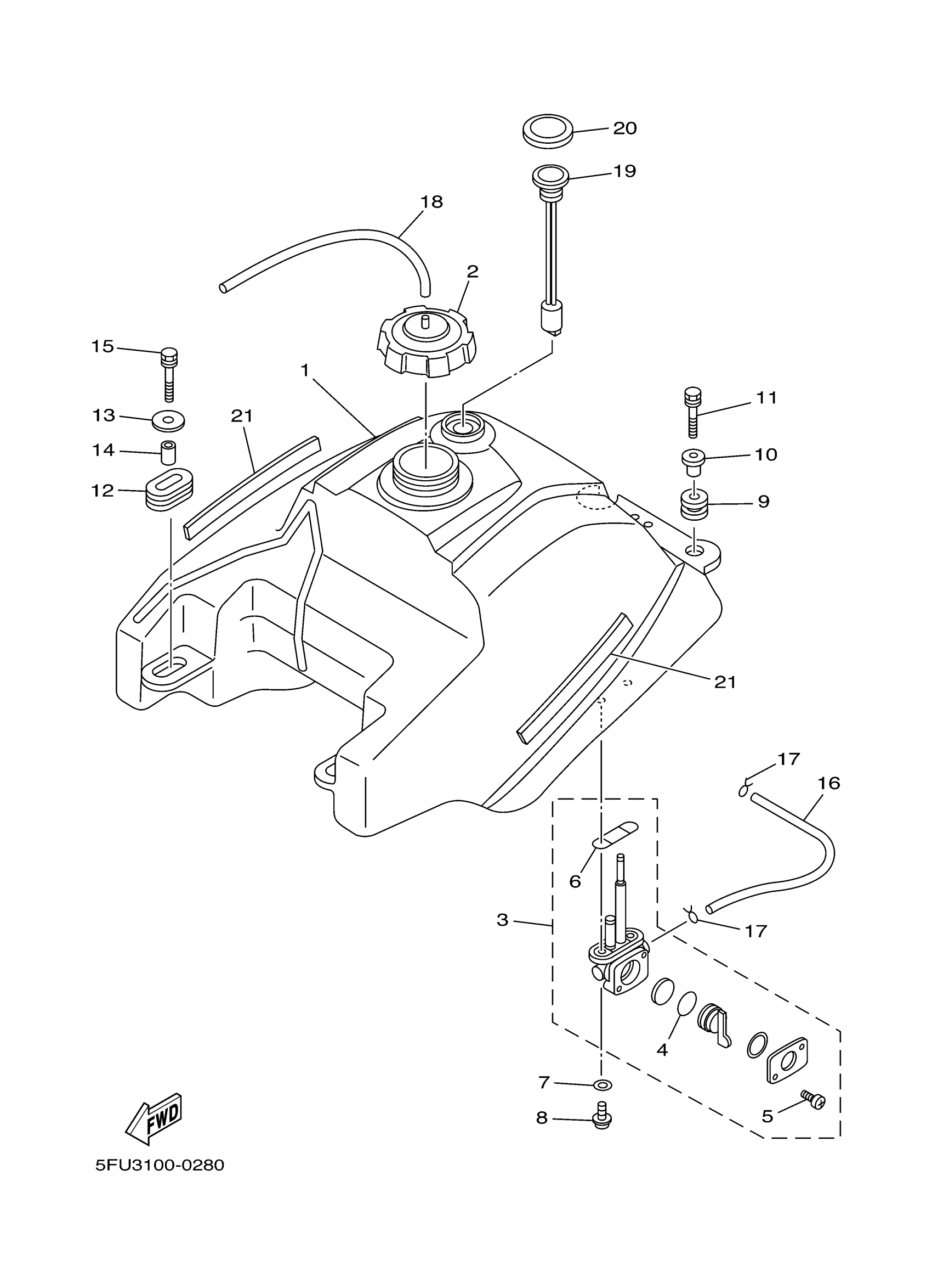 Yamaha YFM400MC (BIG BEAR 2WD) 5GW2 2000 FUEL TANK Diagram