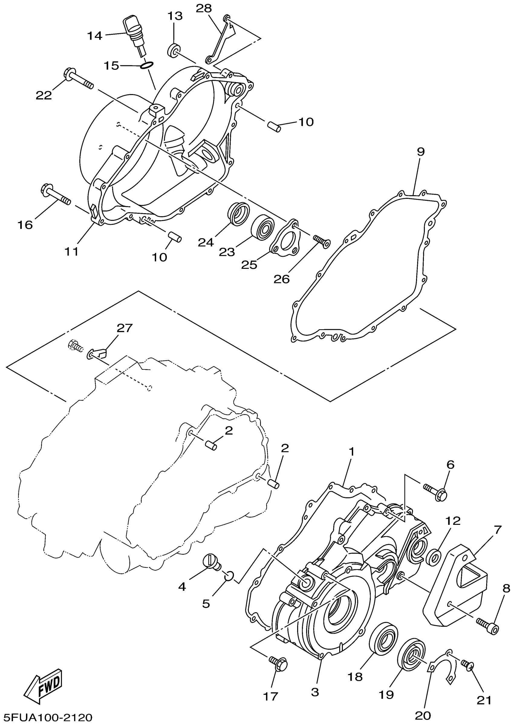 Yamaha YFM400P (BIG BEAR 400 2WD YFM400HP BIG BEAR 2WD REALTREE) 5GW7 2002 CRANKCASE COVER 1 Diagram