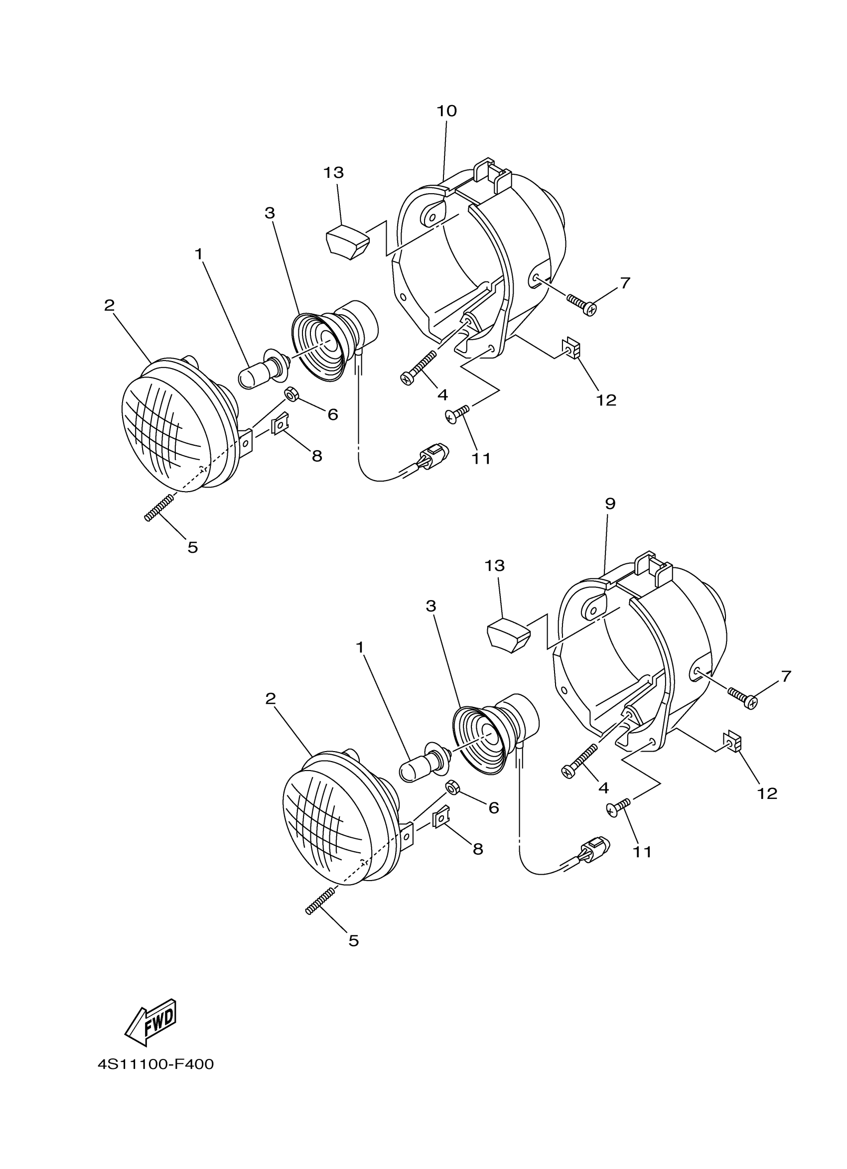 Yamaha YFM40FBBL (BIG BEAR 400 4WD) 4S1M0 2012 HEADLIGHT Diagram
