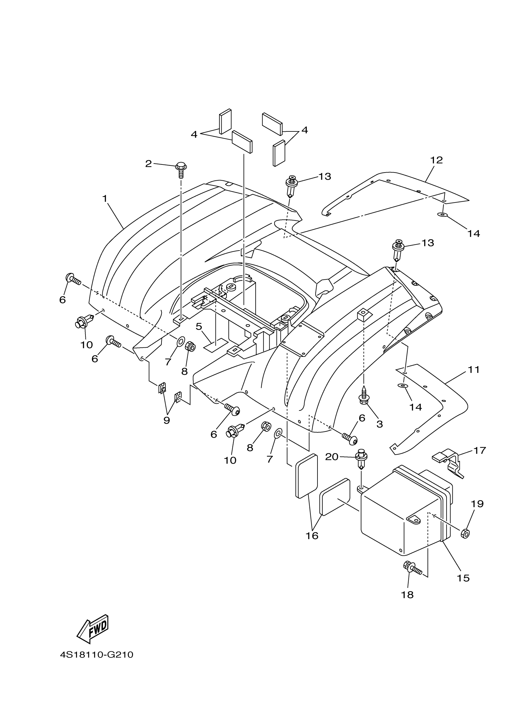 Yamaha YFM40FBZL (BIG BEAR 400 4WD) 4S1D0 2010 REAR FENDER Diagram