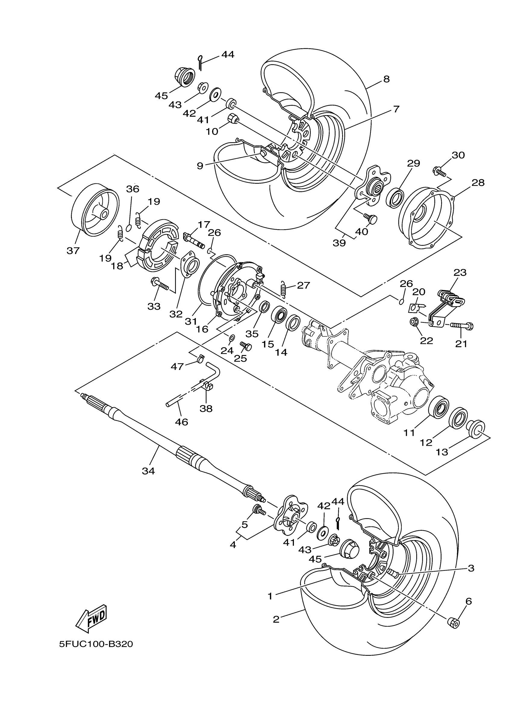 Yamaha YFM40S (BIG BEAR 400 2WD) 5GWB 2004 REAR WHEEL Diagram