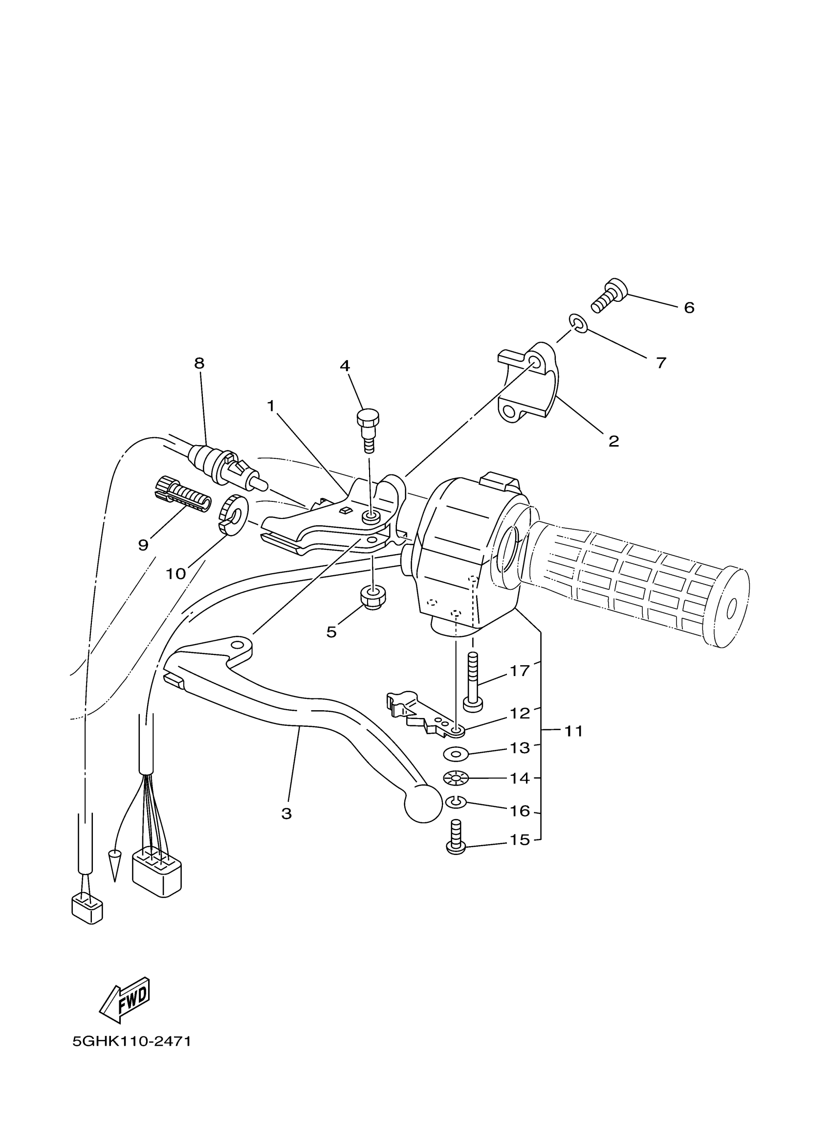 Yamaha YFM450FAHR (KODIAK 450 REAL TREE) 5ND5 2003 HANDLE SWITCH LEVER Diagram
