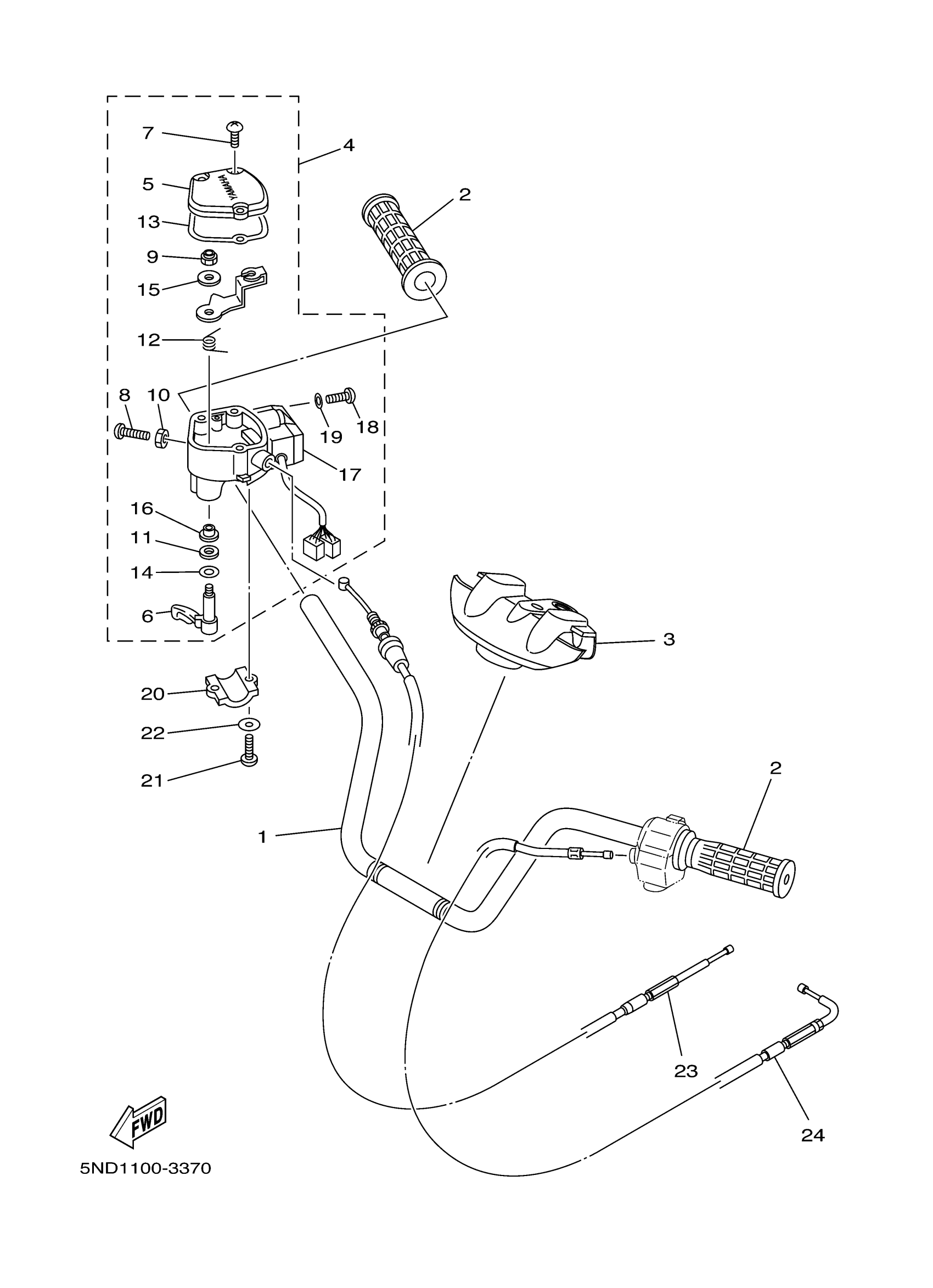 Yamaha YFM450FAR (KODIAK 450 4WD) 5ND1 2003 STEERING HANDLE CABLE Diagram