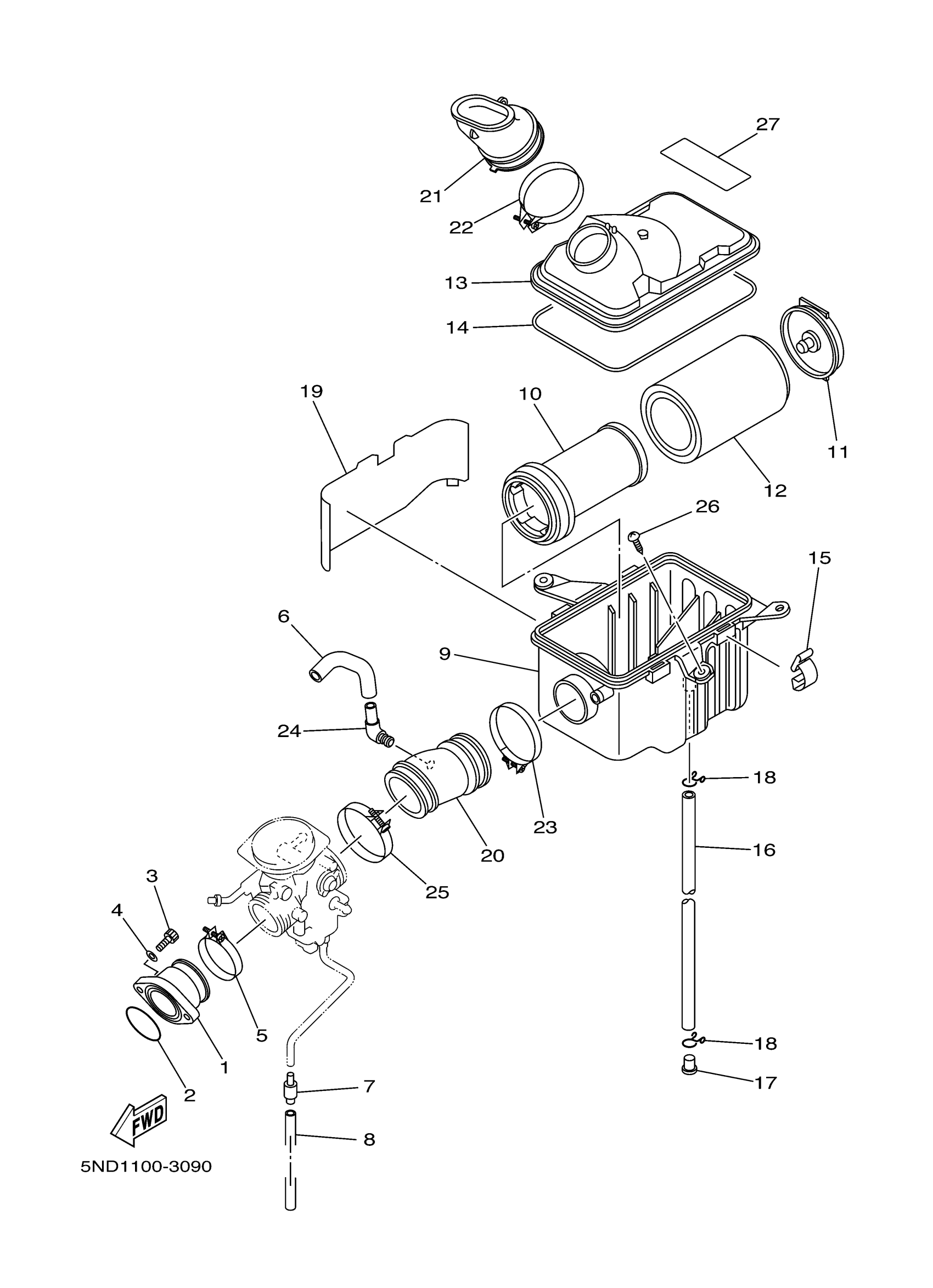 Yamaha YFM45FAHS (KODIAK 450 4X4 HARDWOODS) 5NDC 2004 INTAKE 1 Diagram