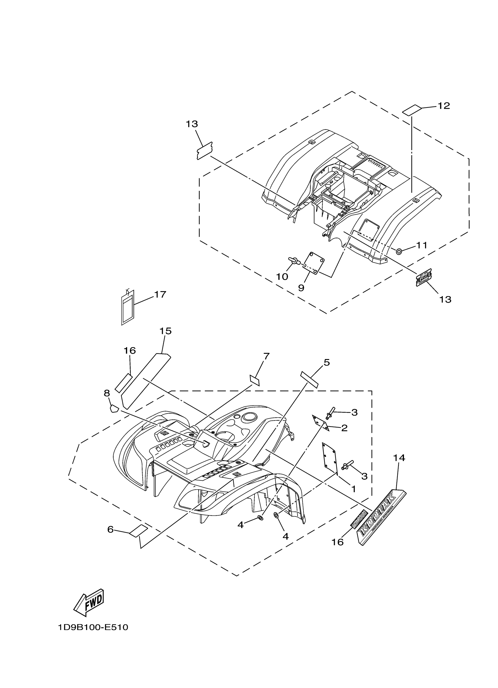Yamaha YFM45FAHV (KODIAK 450 4WD HUNTER_OUTDOORSMAN) 1D9F 2006 EMBLEM LABEL 1 Diagram