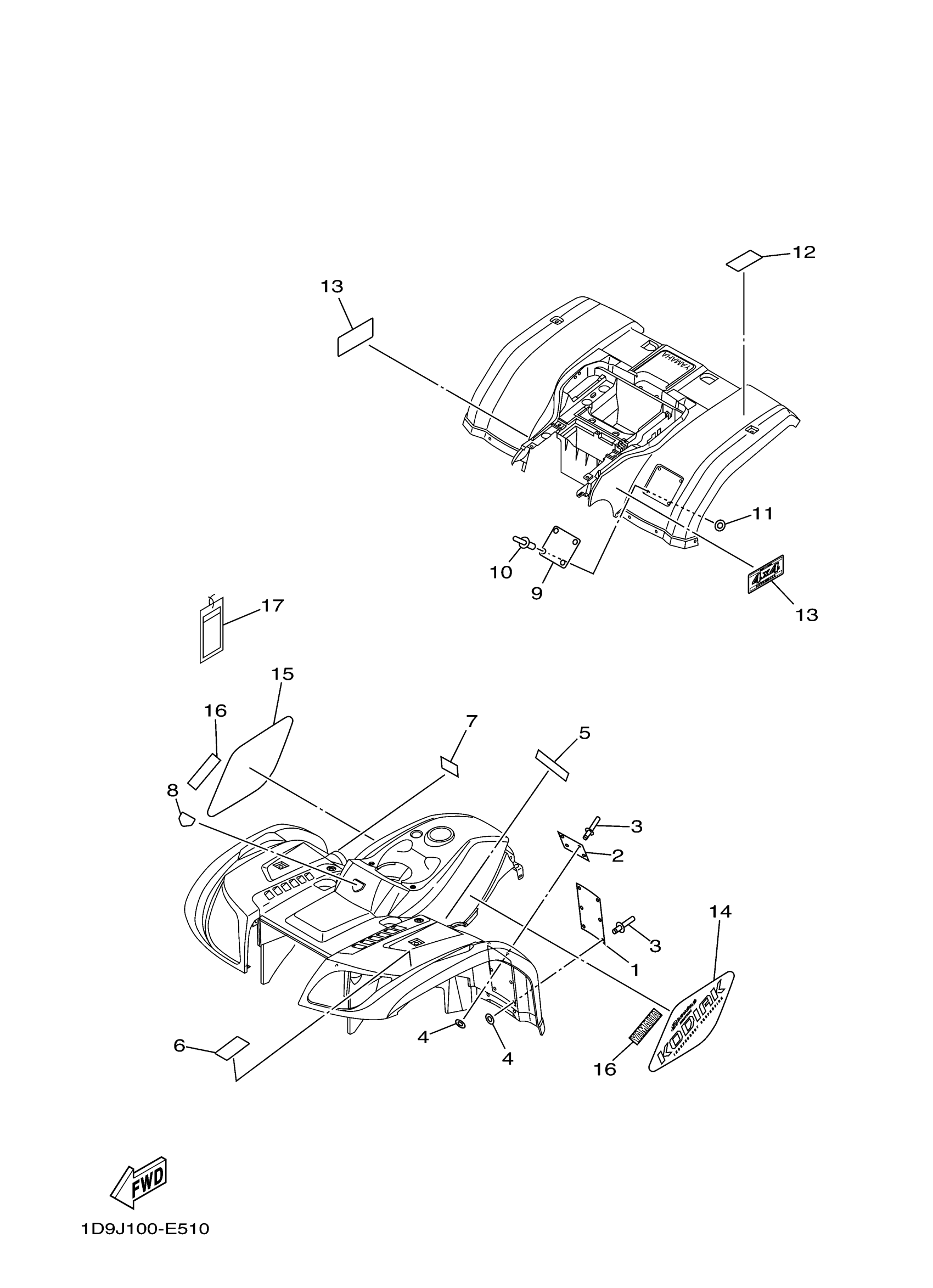 Yamaha YFM45FASEV (KODIAK 450 4WD SPECIAL EDITION) 1D9J 2006 EMBLEM LABEL 1 Diagram