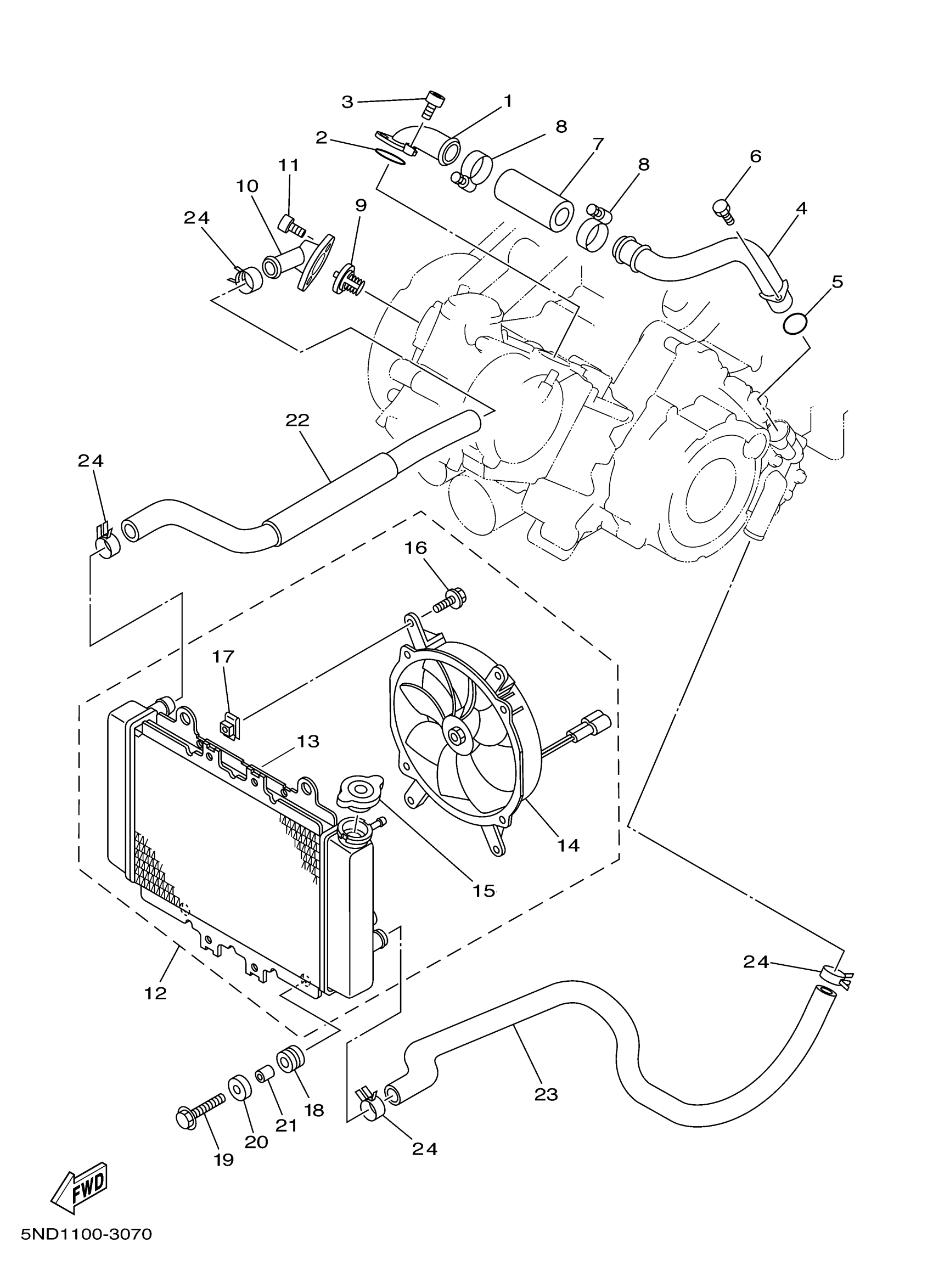 Yamaha YFM45FAT (KODIAK 450 4WD) 1D91 2005 RADIATOR HOSE Diagram