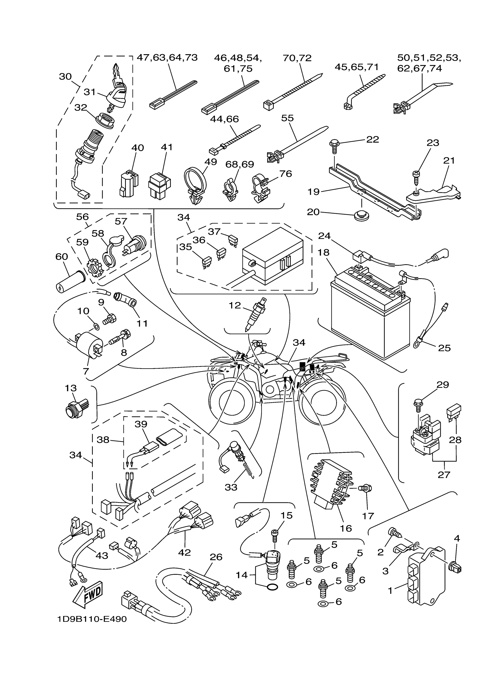 Yamaha YFM45FAV (KODIAK 450 4WD) 1D9B 2006 ELECTRICAL 1 Diagram