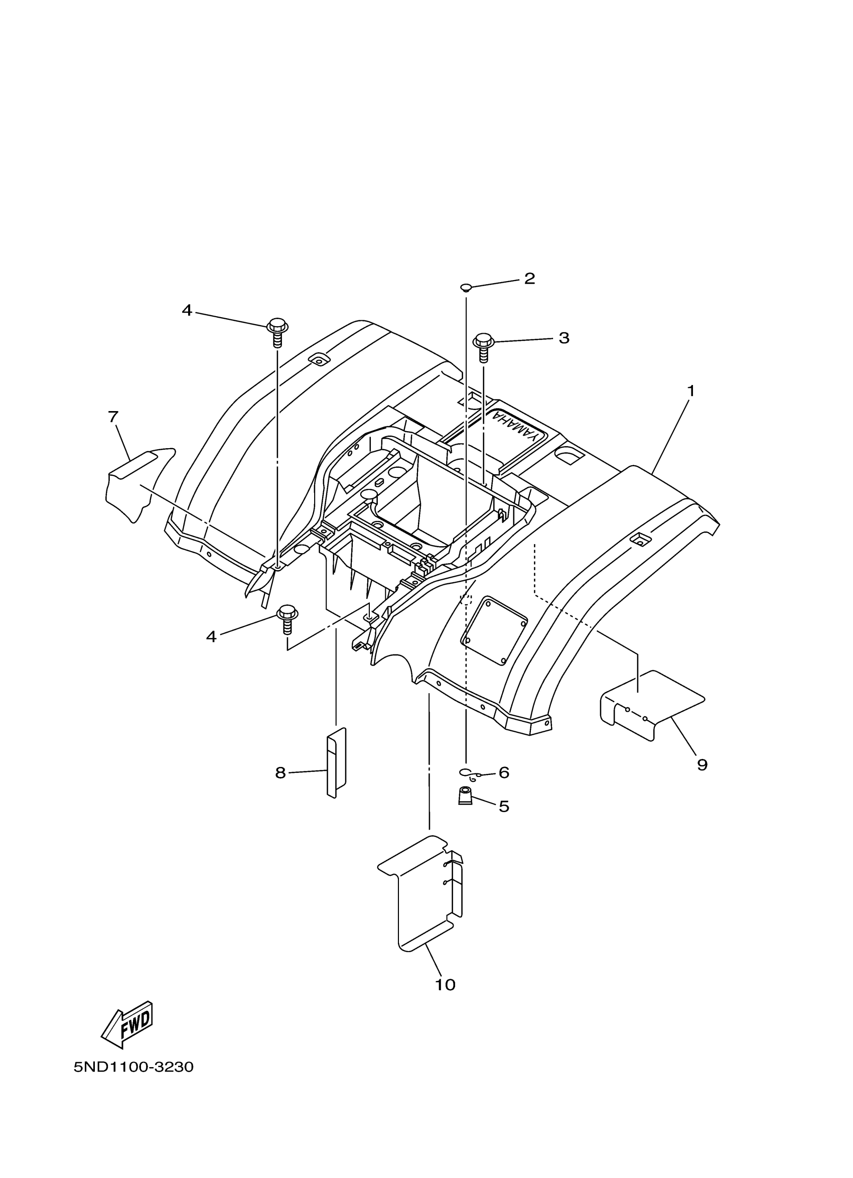 Yamaha YFM45FAV (KODIAK 450 4WD) 1D9B 2006 REAR FENDER Diagram