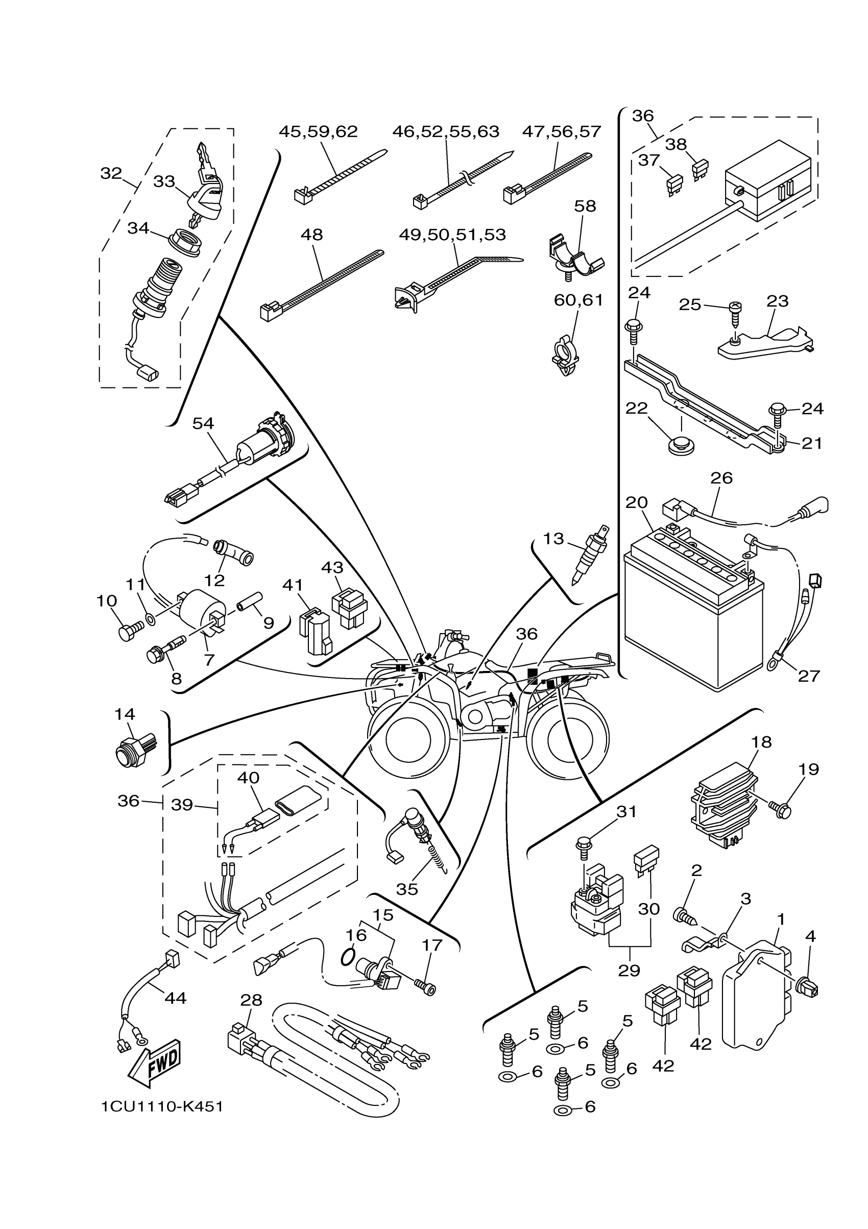 Yamaha YFM45FGBL (GRIZZLY 450 4WD) 1CU60 2012 ELECTRICAL 1 Diagram