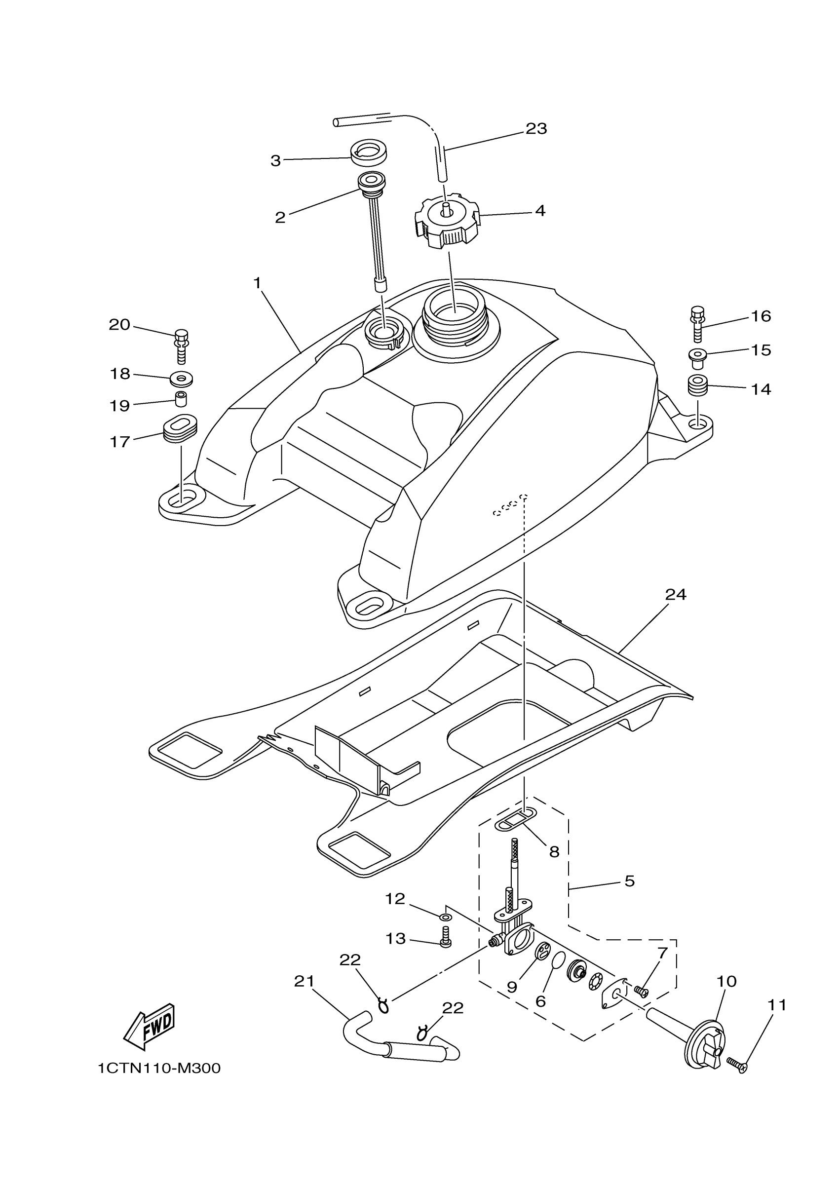 Yamaha YFM45FGDL (GRIZZLY 450 4WD) 1CUD1 2013 FUEL TANK Diagram