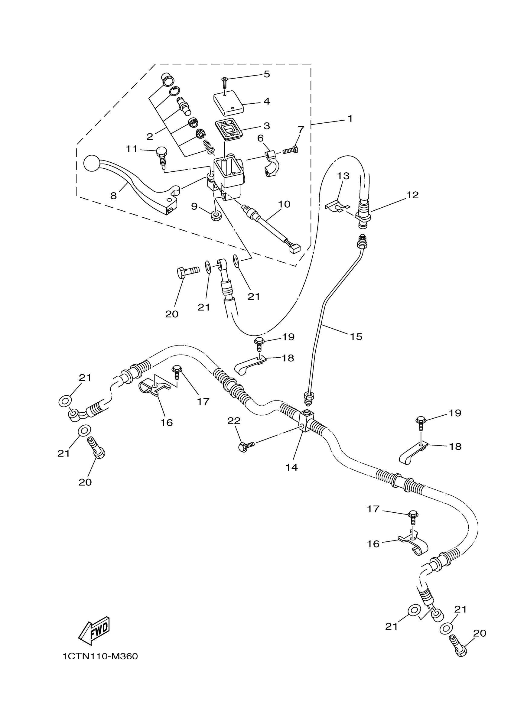 Yamaha YFM45FGHD (GRIZZLY 450 4WD HUNTER) 1CUH 2013 FRONT MASTER CYLINDER Diagram