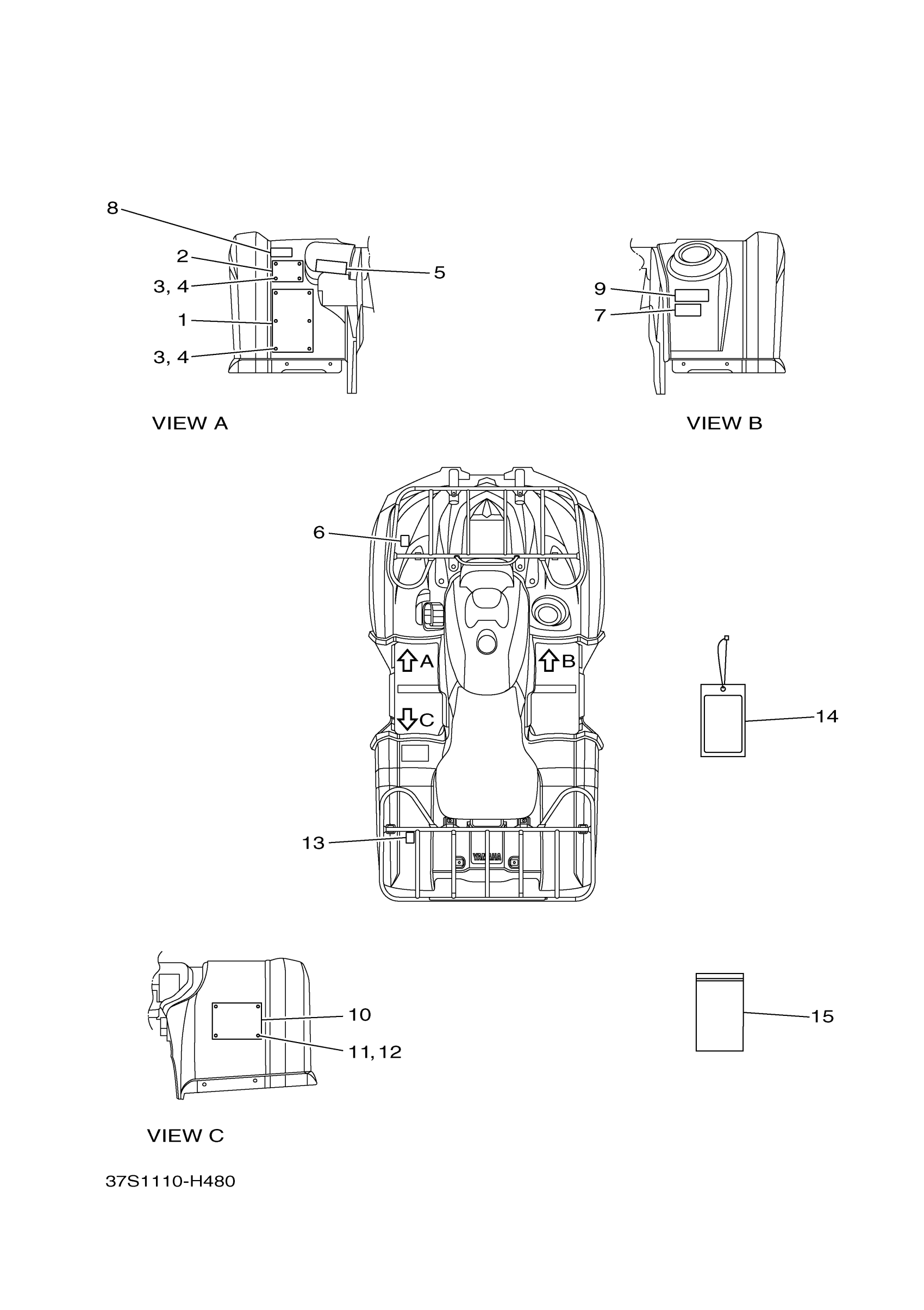 Yamaha YFM45FGHY (GRIZZLY 450 4WD HUNTER) 37S5 2009 EMBLEM LABEL 1 Diagram