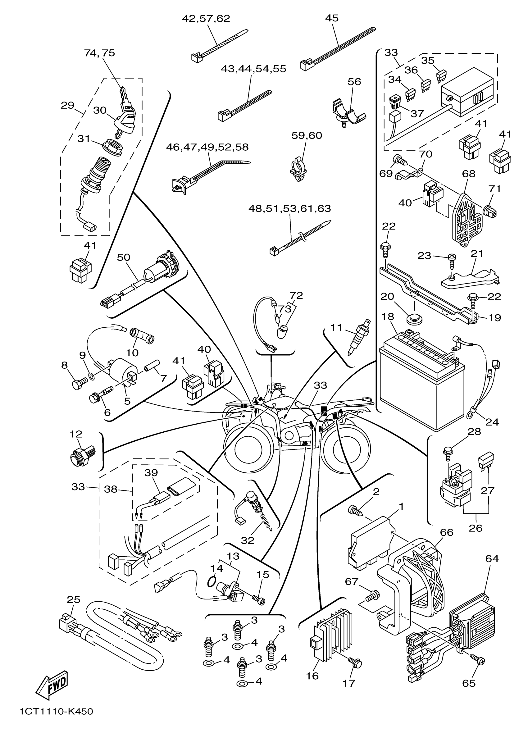 Yamaha YFM45FGPAG (GRIZZLY 450 EPS 4WD) 1CT1 2011 ELECTRICAL 1 Diagram
