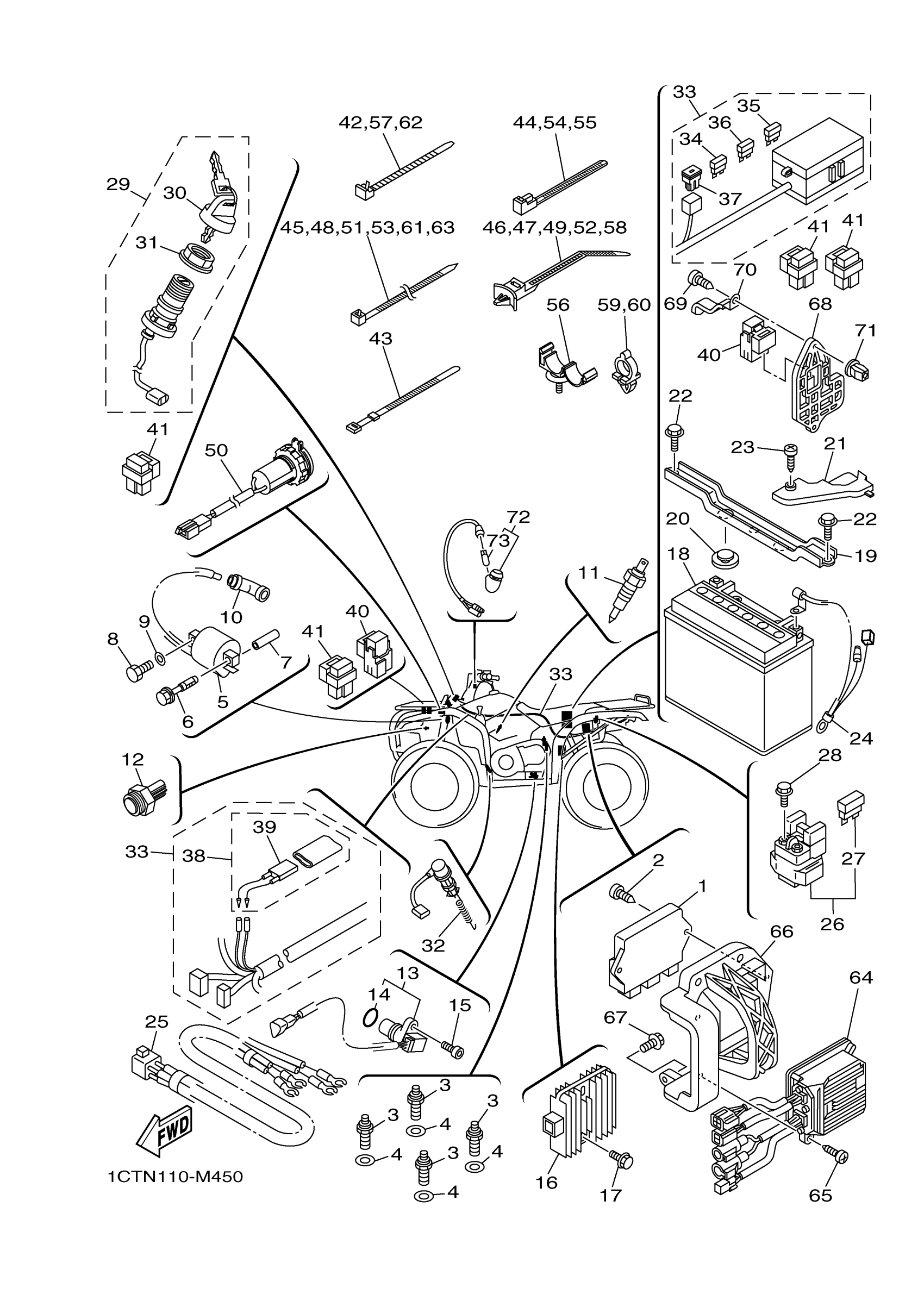 Yamaha YFM45FGPDR (GRIZZLY 450 EPS 4WD) 1CTN1 2013 ELECTRICAL 1 Diagram