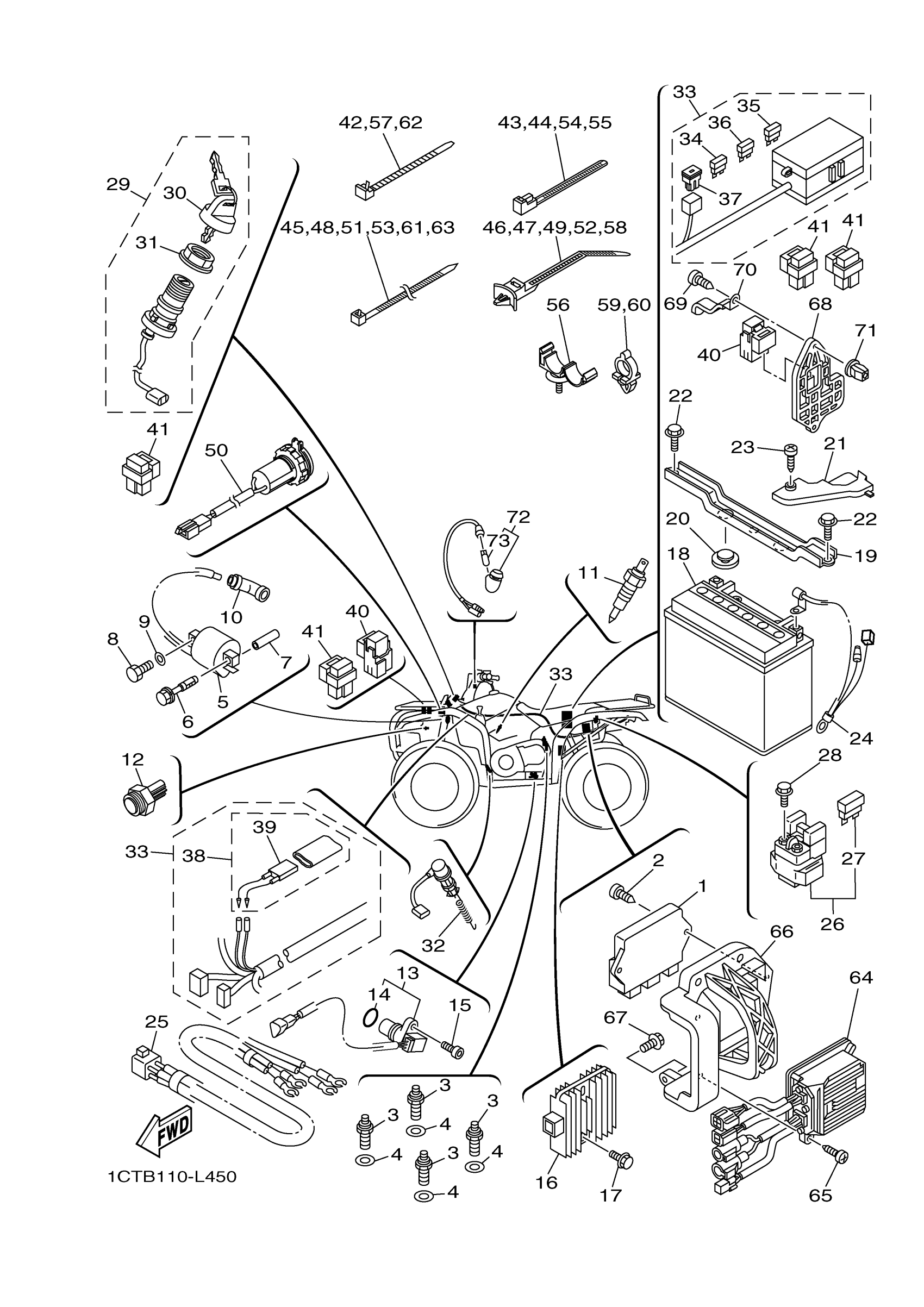 Yamaha YFM45FGPHB (GRIZZLY 450 EPS 4WD HUNTER) 1CTF 2012 ELECTRICAL 1 Diagram