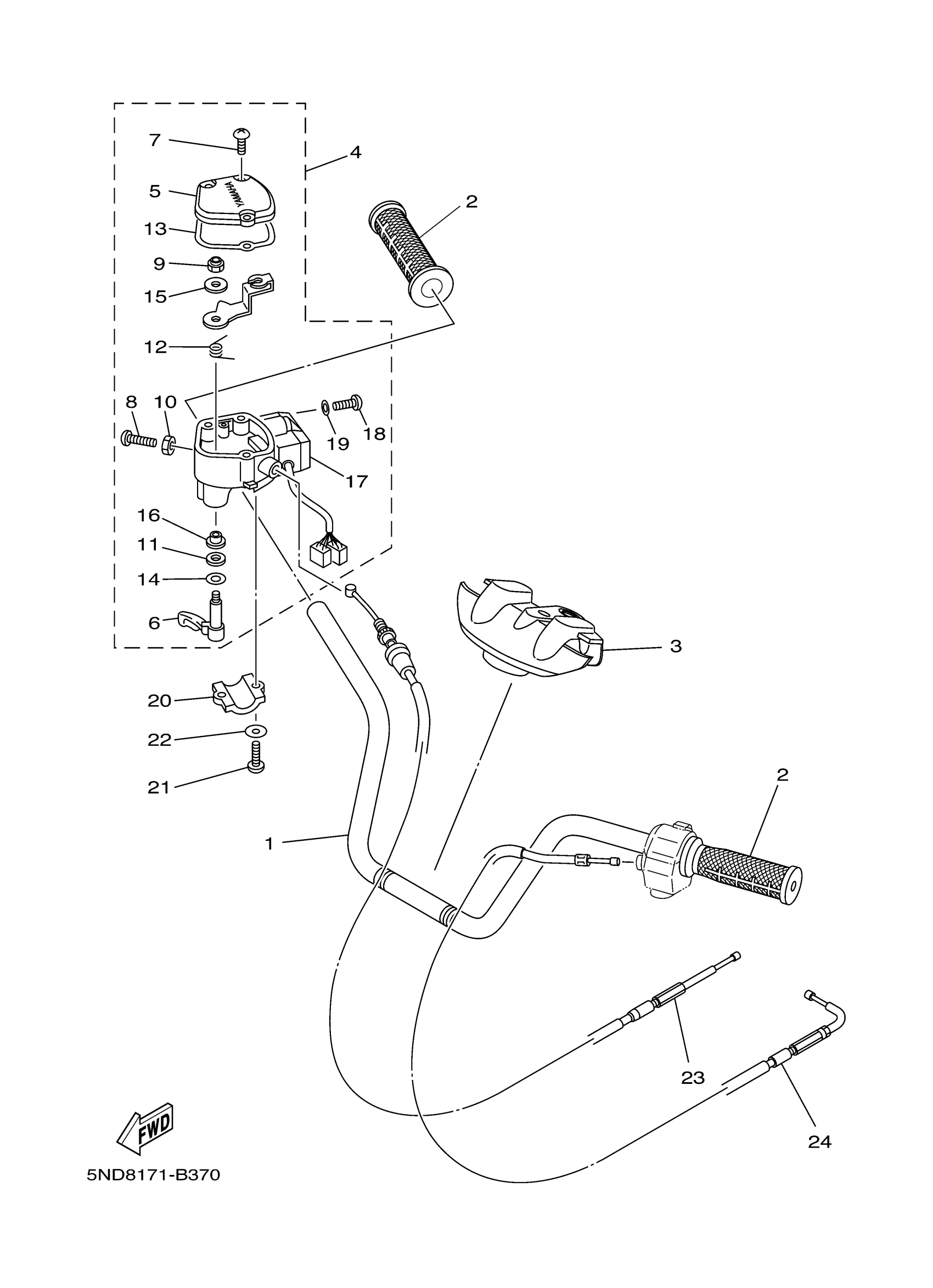 Yamaha YFM45FGW (GRIZZLY 450) 1D9M 2007 STEERING HANDLE CABLE Diagram