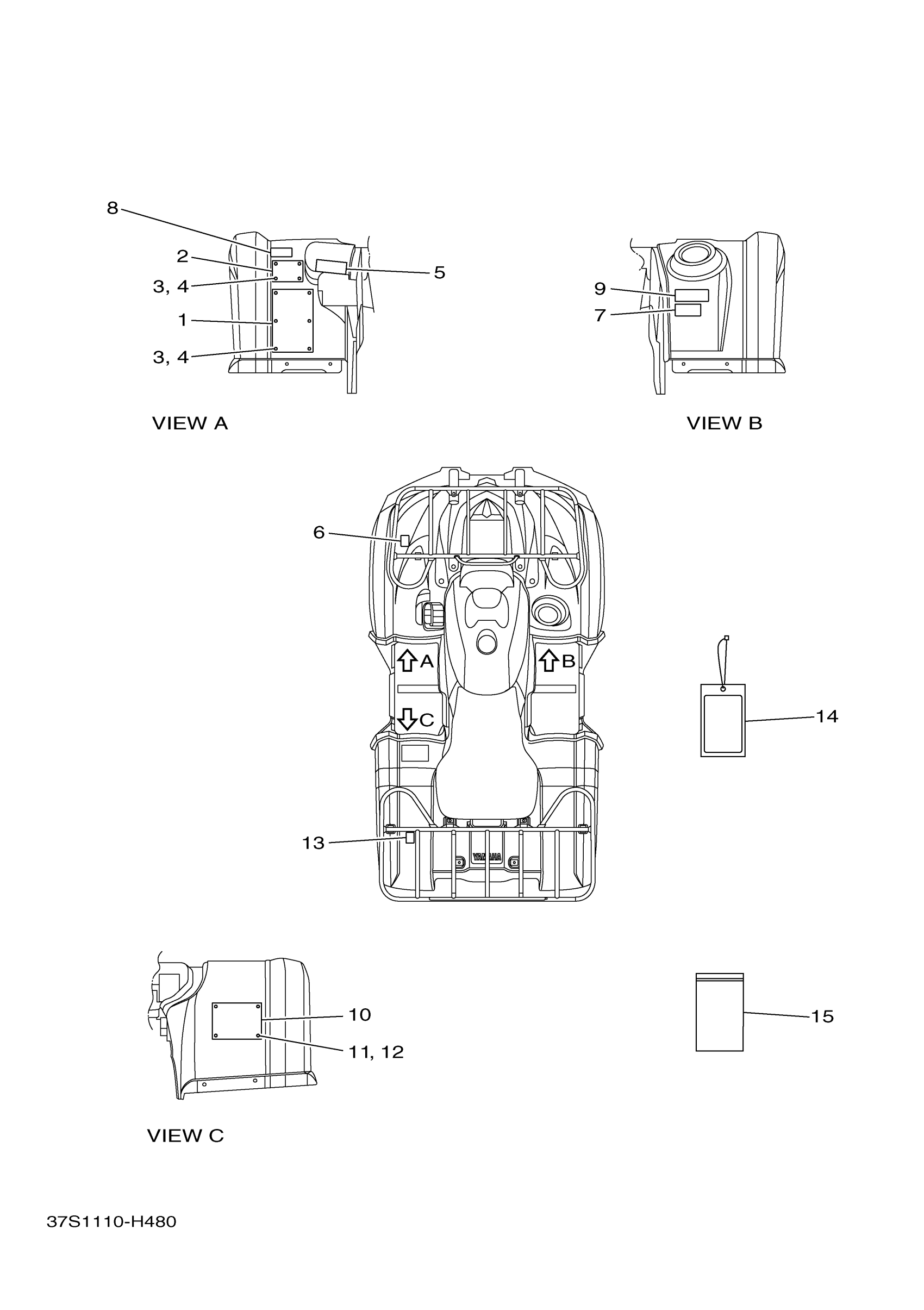 Yamaha YFM45FGYL (GRIZZLY 450 4WD) 37S11 2009 EMBLEM LABEL 1 Diagram