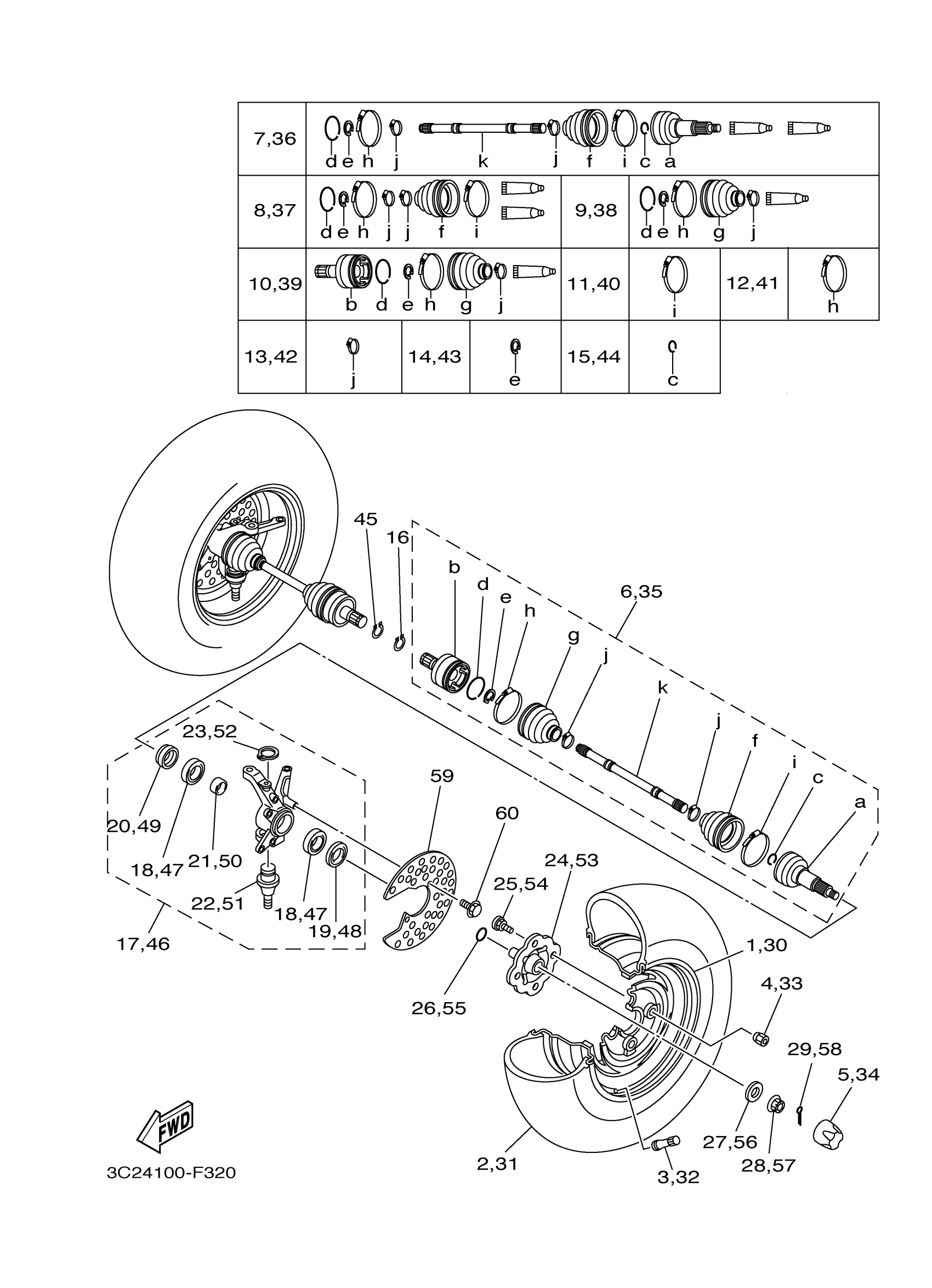 Yamaha YFM45FXW (WOLVERINE 450 4X4 SPORT) 3C24 2007 FRONT WHEEL Diagram
