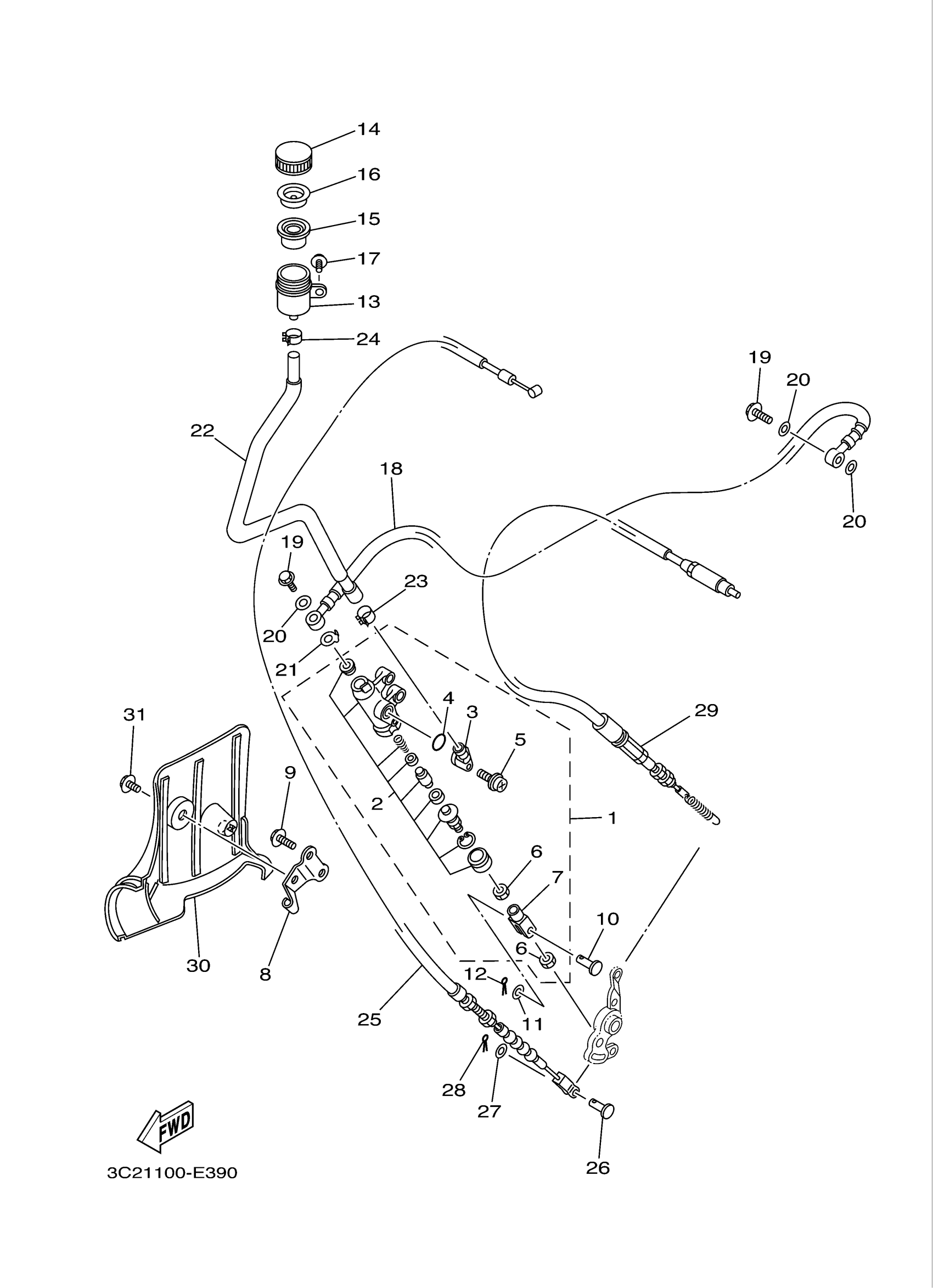 Yamaha YFM45FXXL (WOLVERINE 450 4WD) 3C2A0 2008 REAR MASTER CYLINDER Diagram