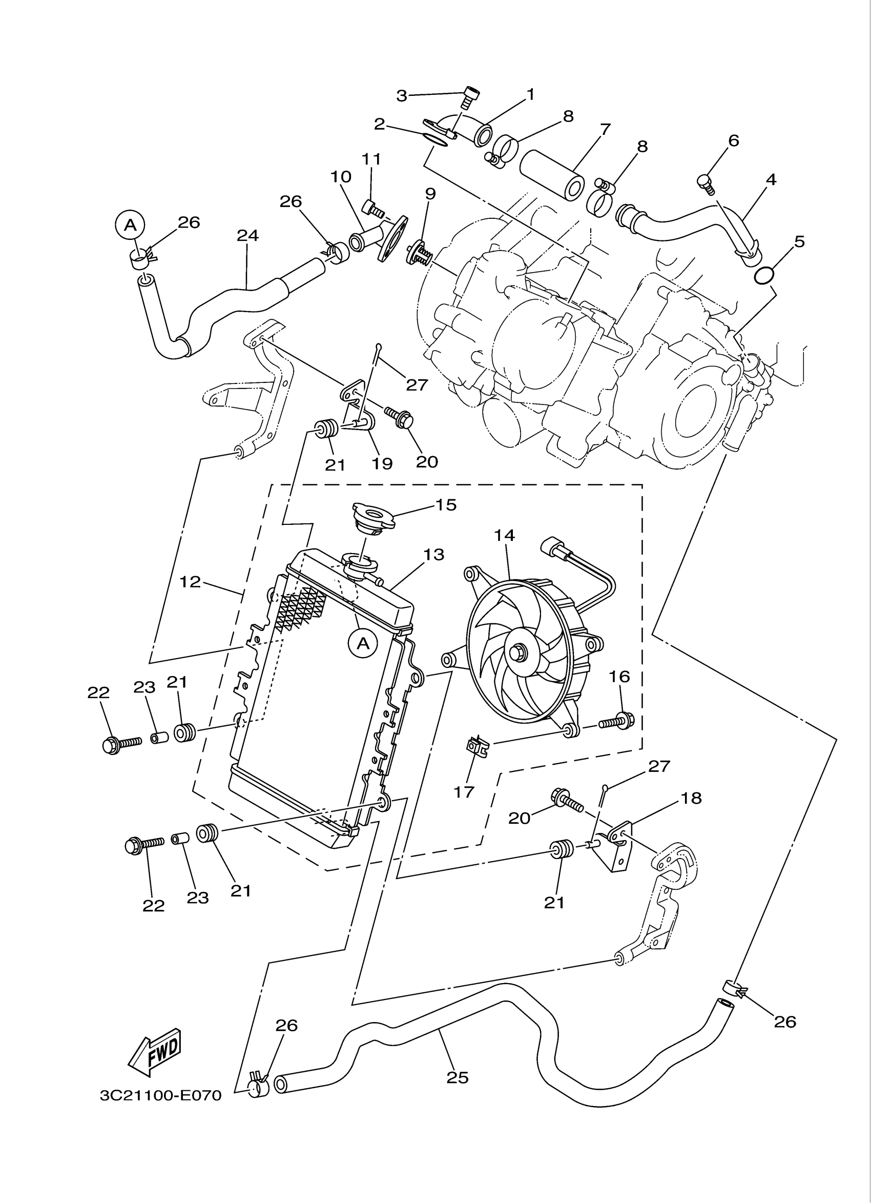Yamaha YFM45FXYL (WOLVERINE 450 4WD) 3C2G 2009 RADIATOR HOSE Diagram